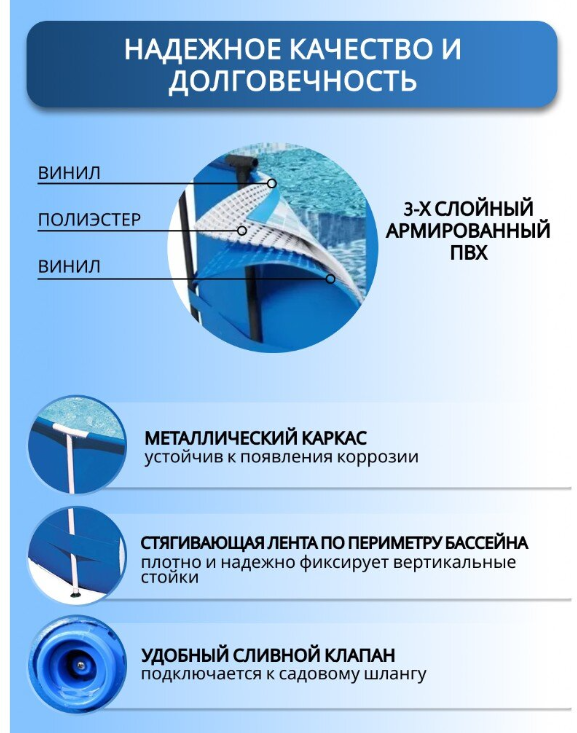Каркасный бассейн Intex Metal Frame 28206 Синий Размеры: Высота 760мм Глубина 3050мм Ширина 3050мм