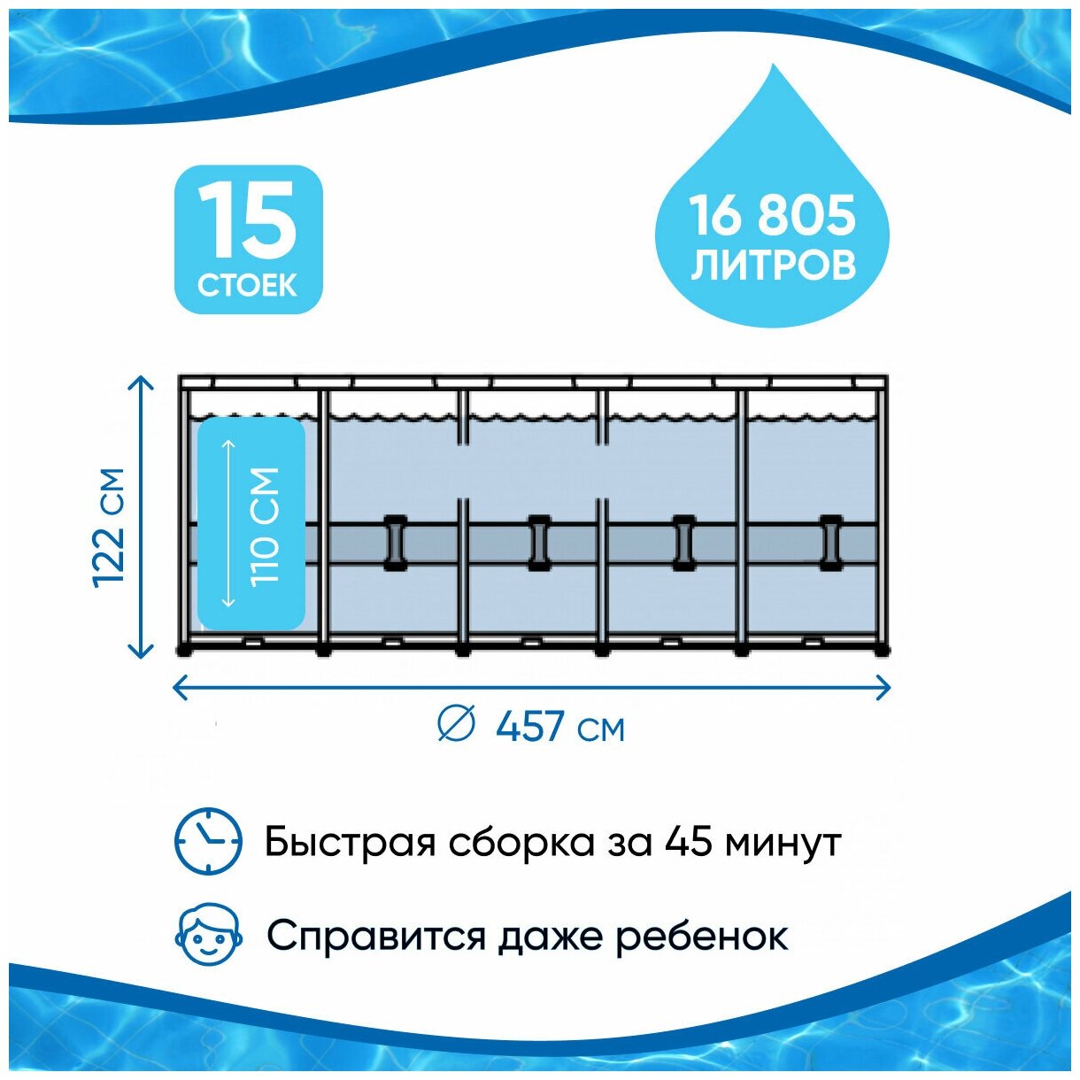 Каркасный бассейн Intex 457x122 см Metal Frame + фильтр-насос 3785 л/ч, лестница, тент, подсти интересное: