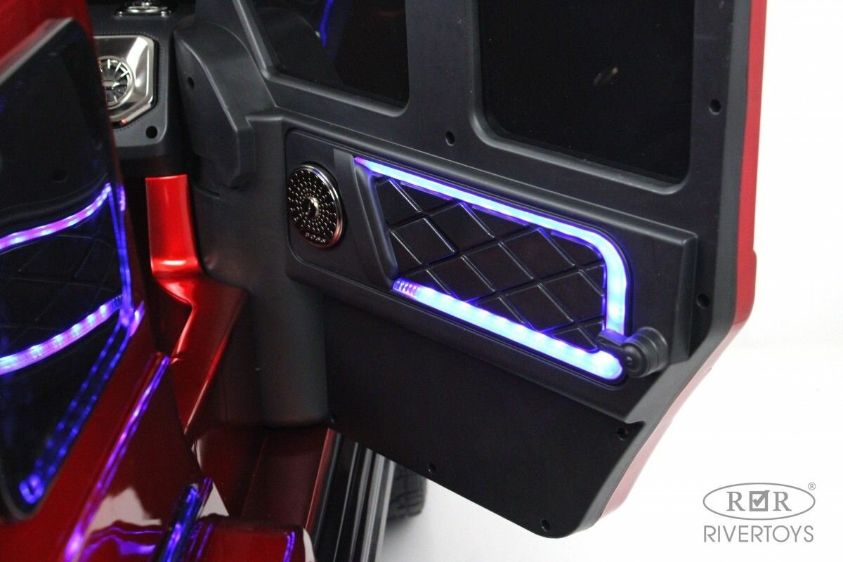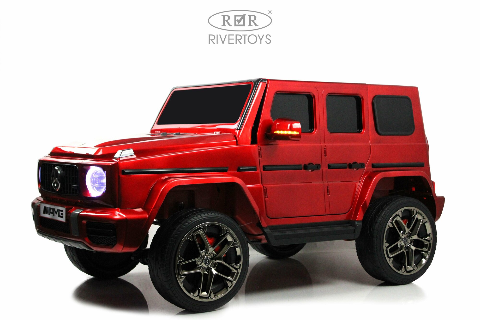 Детский электромобиль RiverToys Mercedes-AMG G63 (G111GG) красный глянец с дистанционным управлением, двухместный, полноприводный