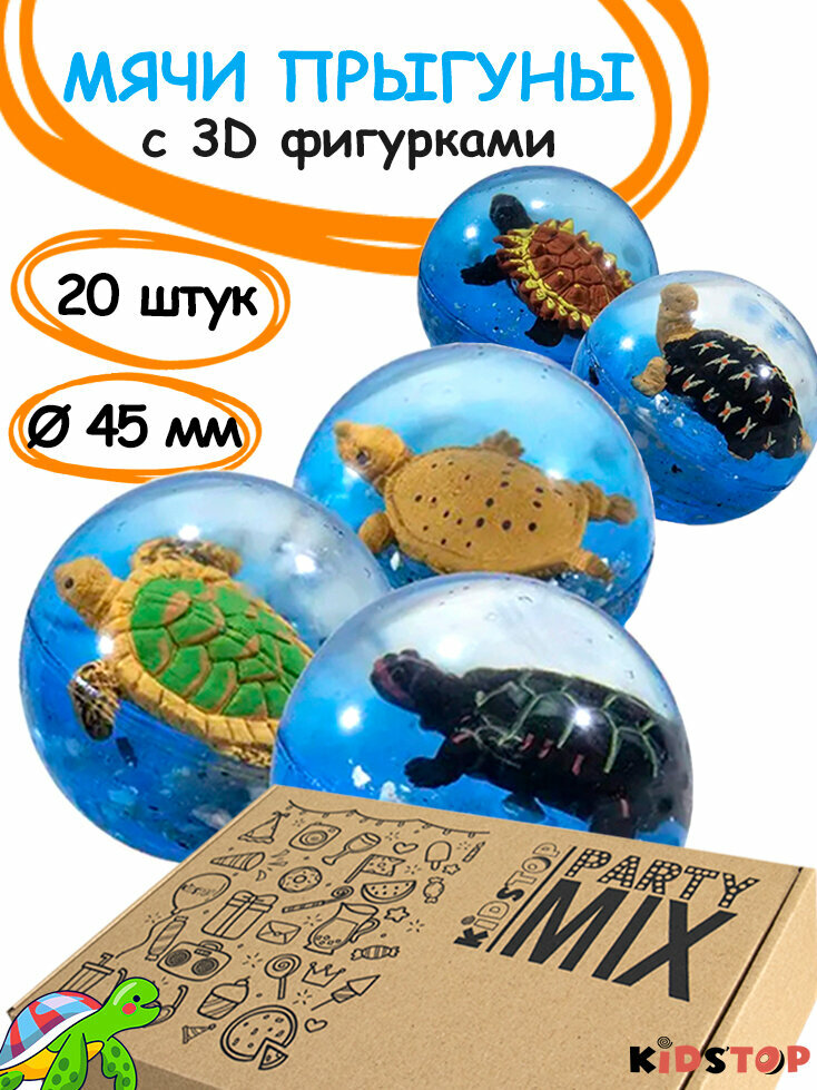 Купить Мячи-прыгуны с 3D фигурками черепашек внутри, 20 штук