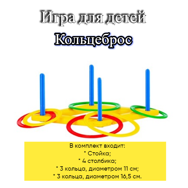 | В комплекте | 6 колец двух размеров, подставка, шесты-мишени |