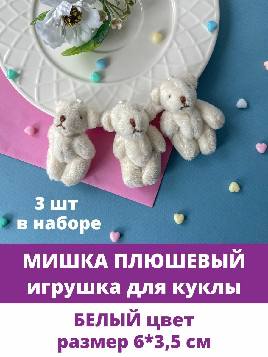 Купить Мишка плюшевый, кукольная миниатюра, игрушка для кукол, Белый цвет, 3 шт.
