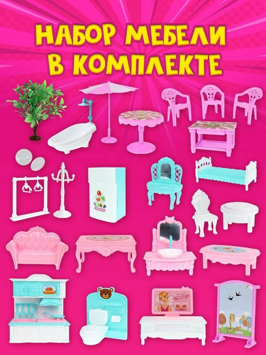 Домик для кукол "Вилла мечты" 82,6х70,5х56 см (куклы, питомцы, мебель). Подарок для девочек интересное: