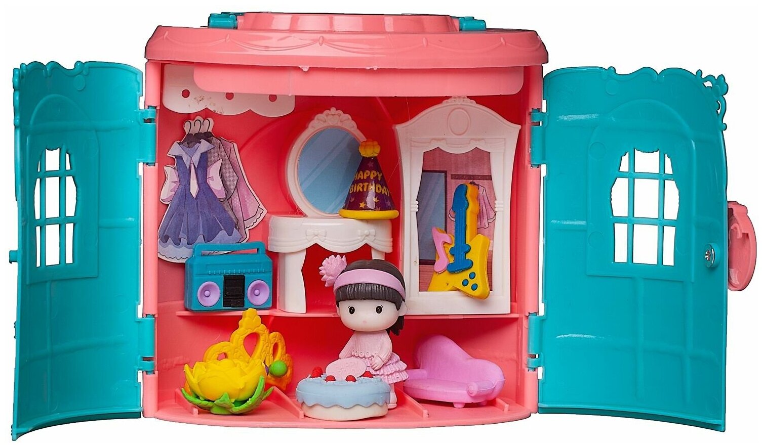 Игровой набор Abtoys В гостях у куклы. Домик-трансформер и куколка, в наборе с аксессуарами, голубой PT-01466/голубой интересное: