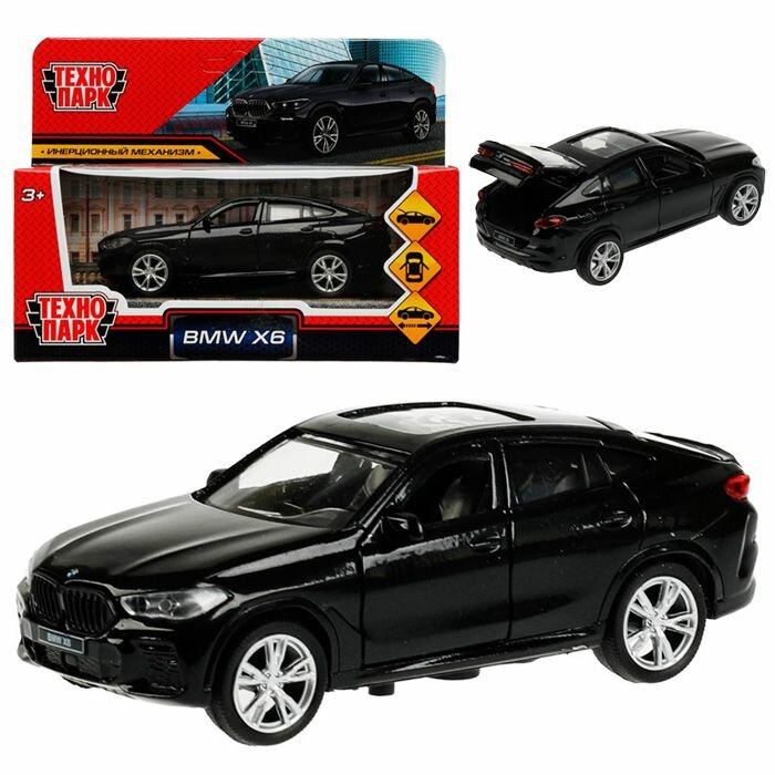Купить Машинка детская BMW X6 12 см, Технопарк, черная, открываются двери и багажник, металлическая