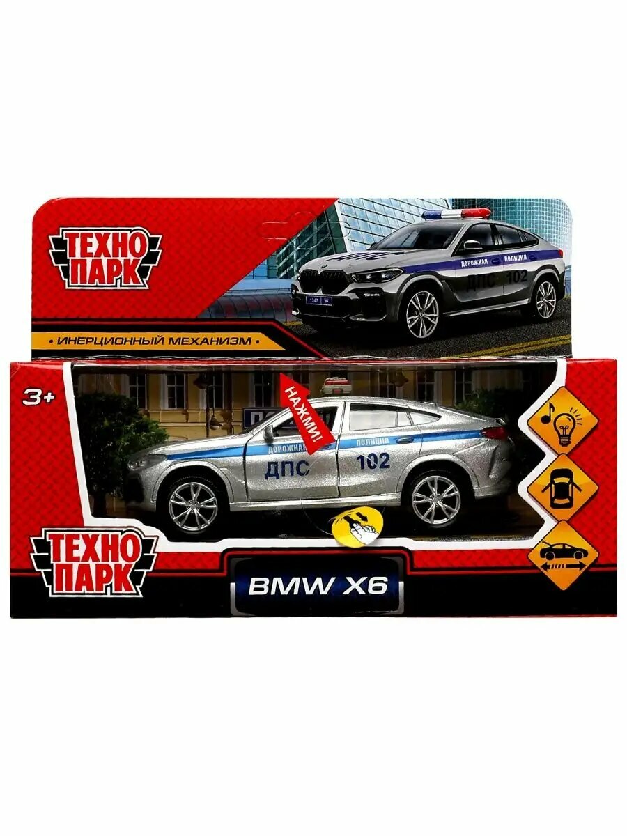 Купить Модель машины Технопарк BMW X6, Полиция, серебристая, инерционная, свет, звук Х6-12SLРОL-SR
