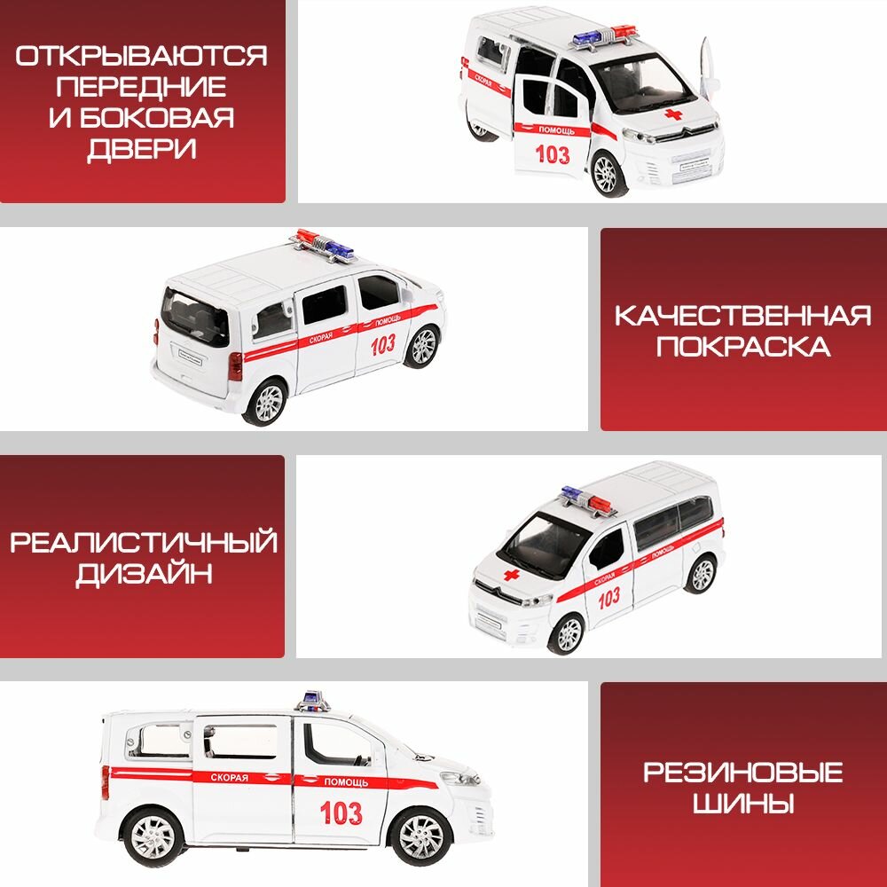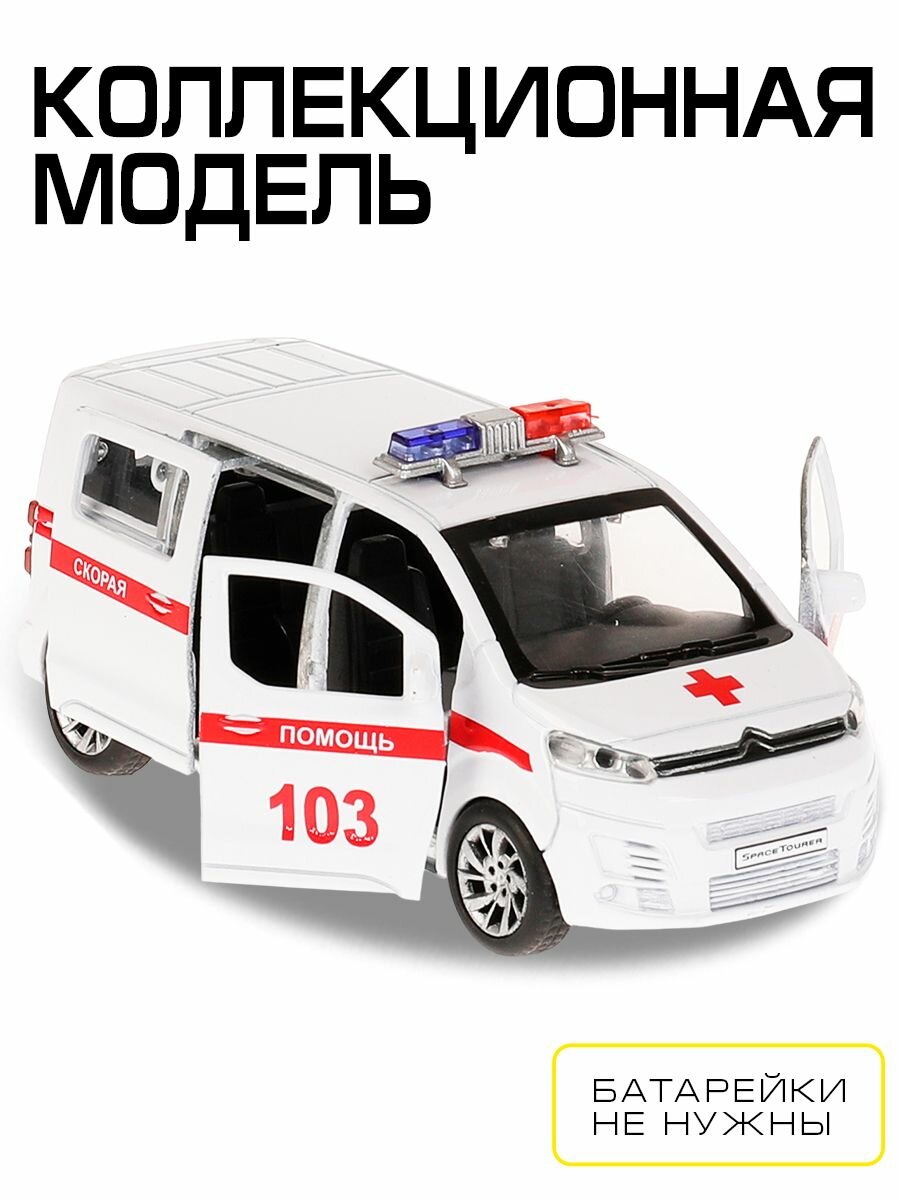 Купить Машинка детская Скорая помощь Citroen Space Tourer 12 см, Технопарк, белая, открываются двери, металлический корпус