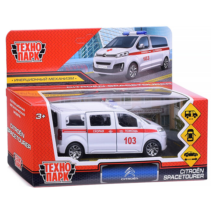 СохранитьМашинка детская Скорая помощь Citroen Space Tourer 12 см, Технопарк, белая, открываются двери, металлический корпус интересное: