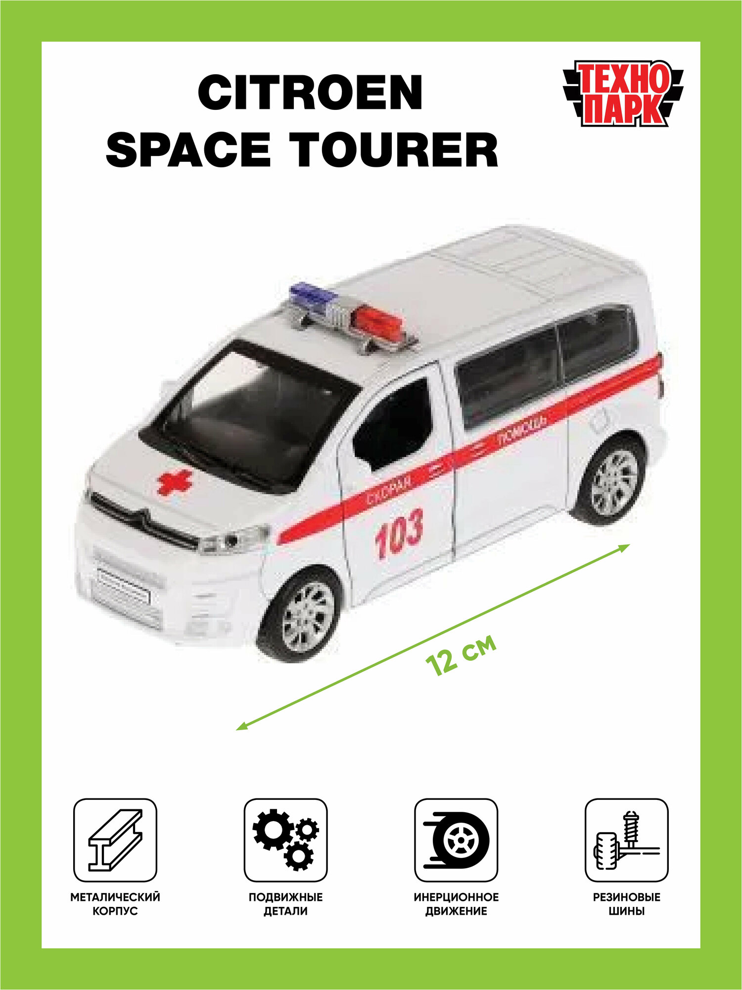 Ниже Вы можете прочитать отзывы на Машинка детская Скорая помощь Citroen Space Tourer 12 см, Технопарк, белая, открываются двери, металлический корпус, ознакомится с подробными характеристиками, посмотреть интересные обзоры и фотографии на Машинка детская Скорая помощь Citroen Space Tourer 12 см, Технопарк, белая, открываются двери, металлический корпус.