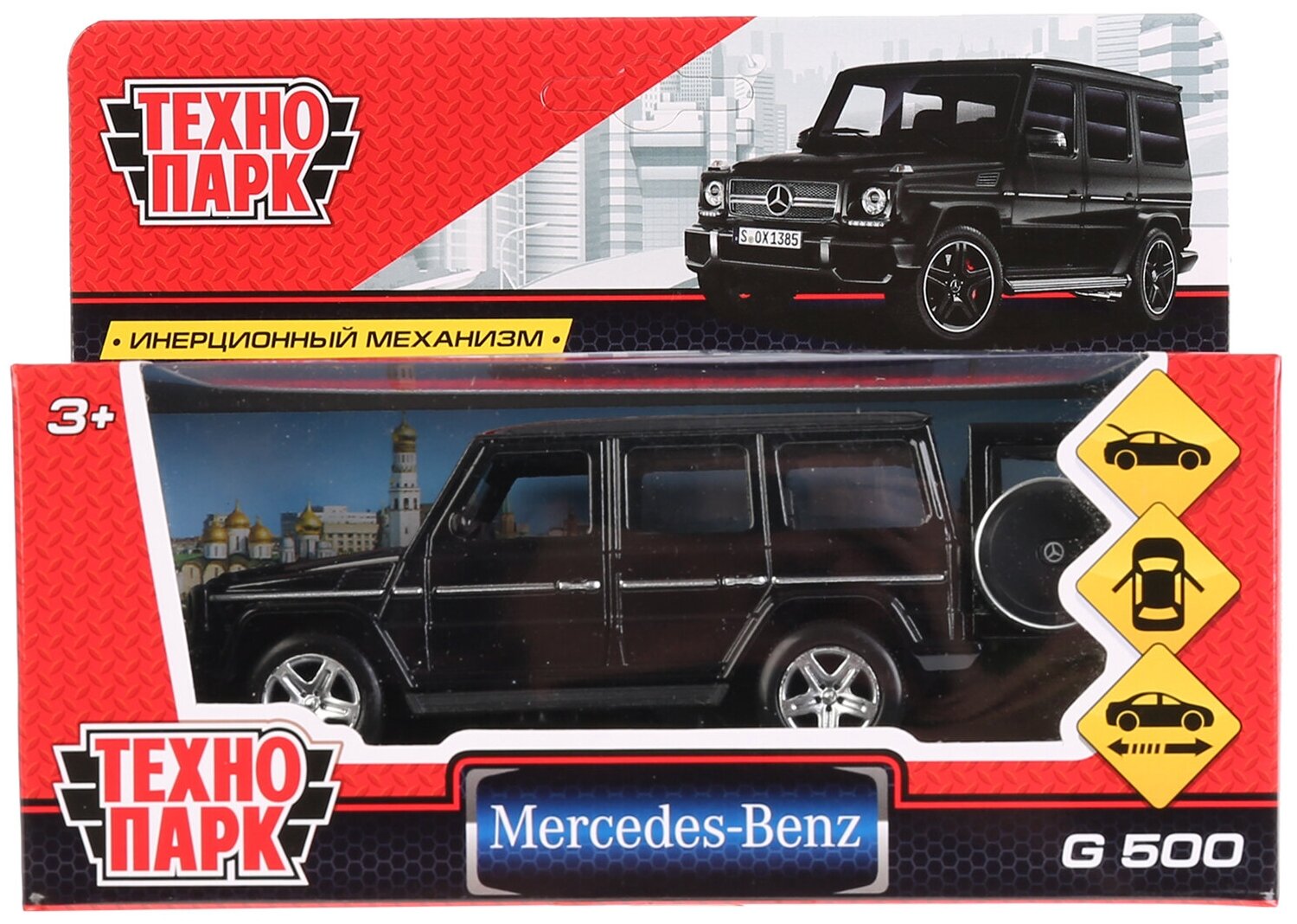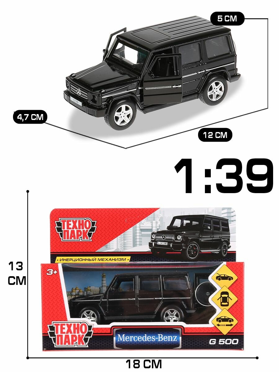 Машинка детская Mercedes-Benz G350 G-Wagen 12 см, Технопарк, черная матовая, открываются двери и багажник