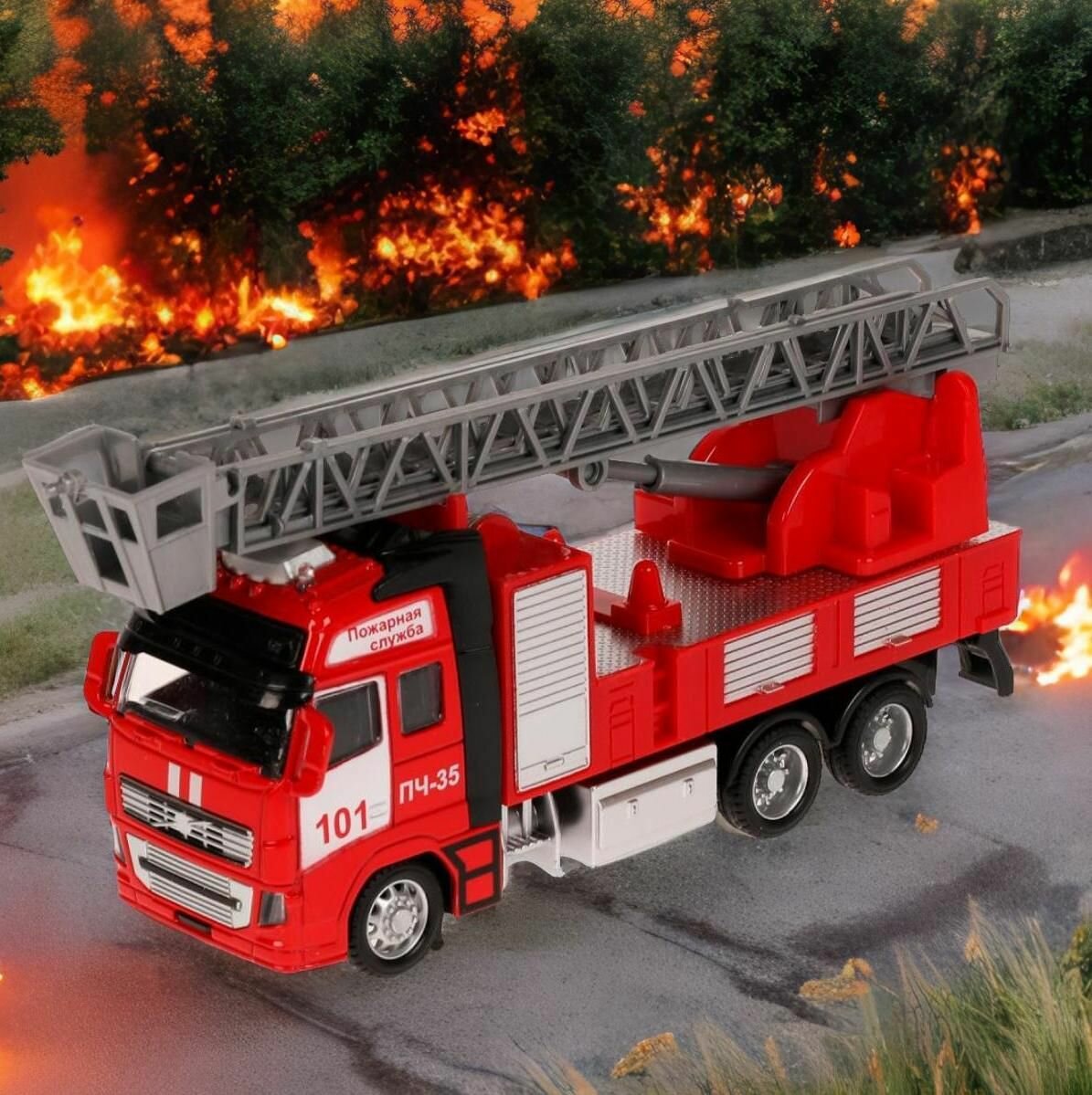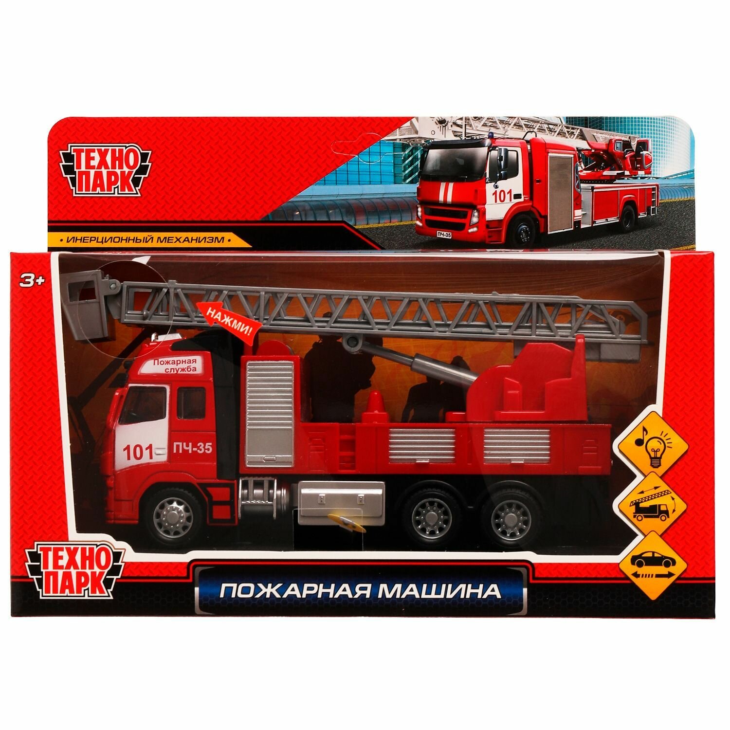 Машинка игрушка детская для мальчика Технопарк Пожарная световые и звуковые эффекты металлическая