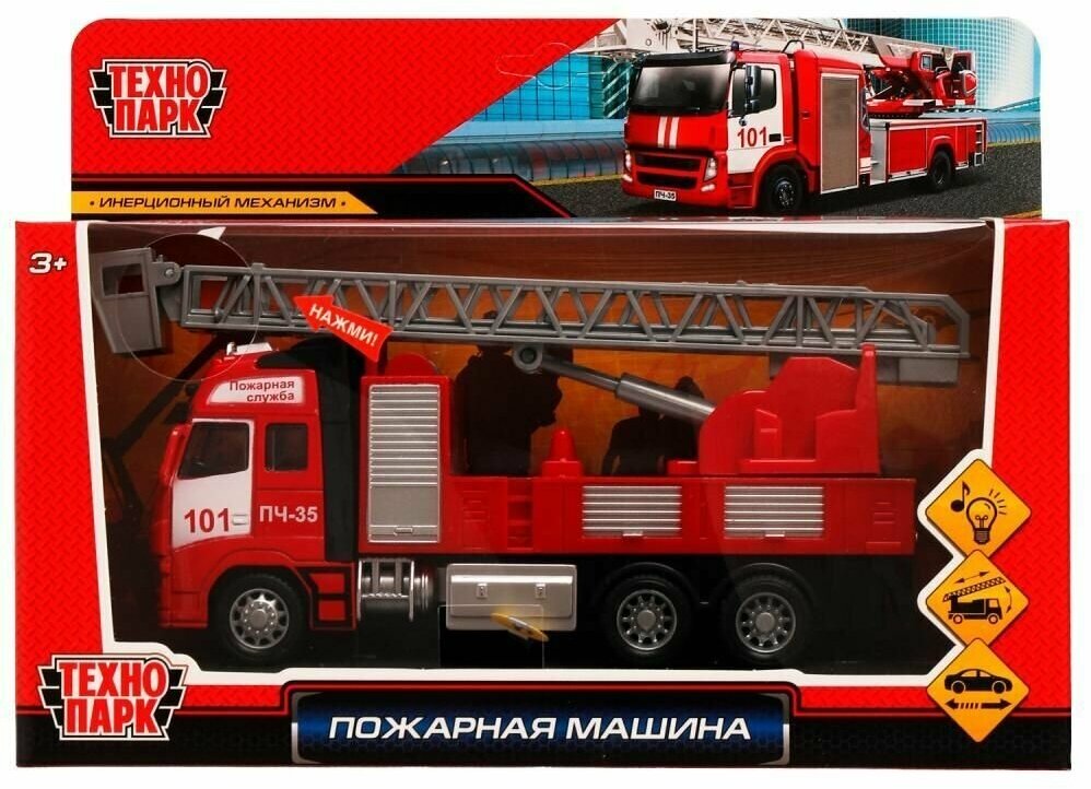 Купить Технопарк Машина металл свет-звук пожарная машина 21см,подв. дет,инерц.