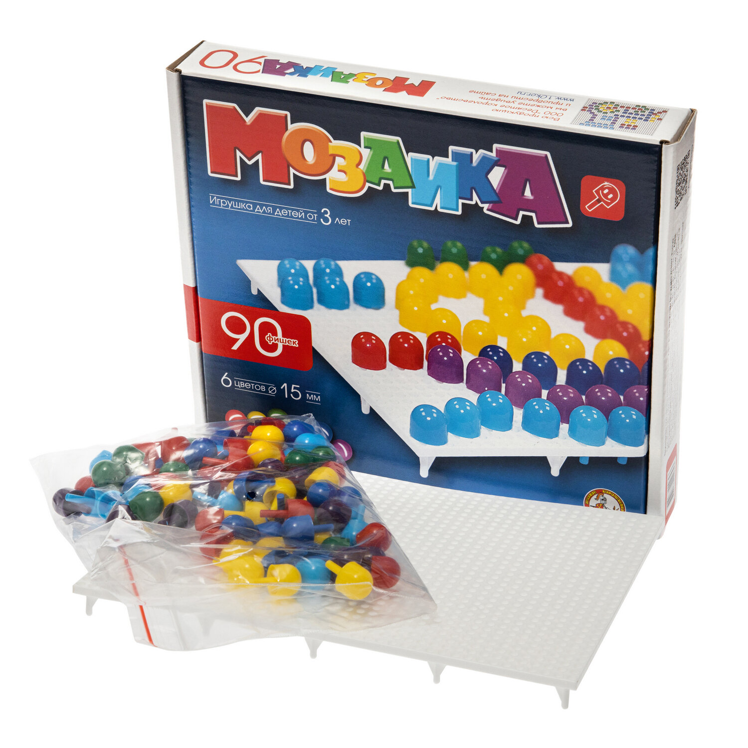 Мозаика диаметр 15 мм, 6 цветов, 90 элементов, игра Десятое Королевство 00964ДК