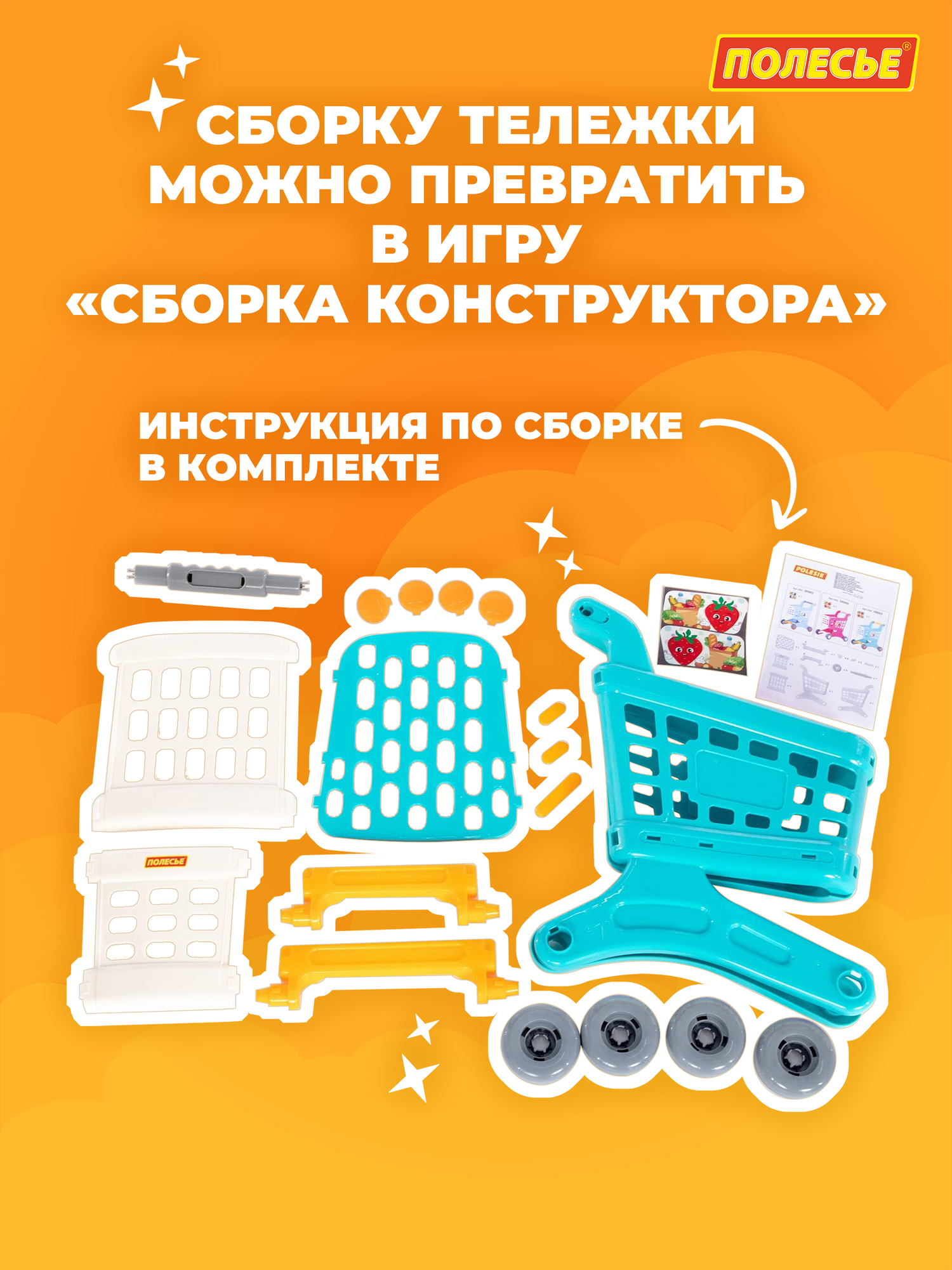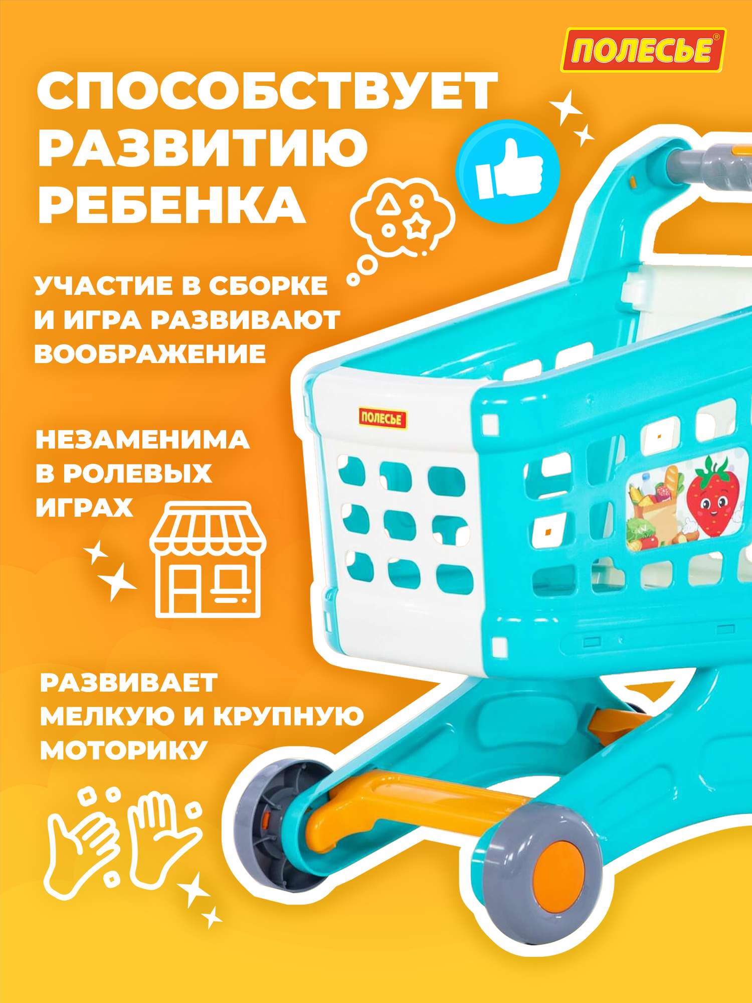 Тележка для продуктов супермаркета голубая игрушечная полесье