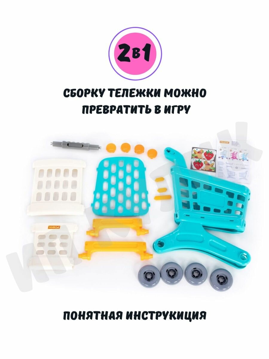 Тележка для продуктов супермаркета игрушечная розовая полесье