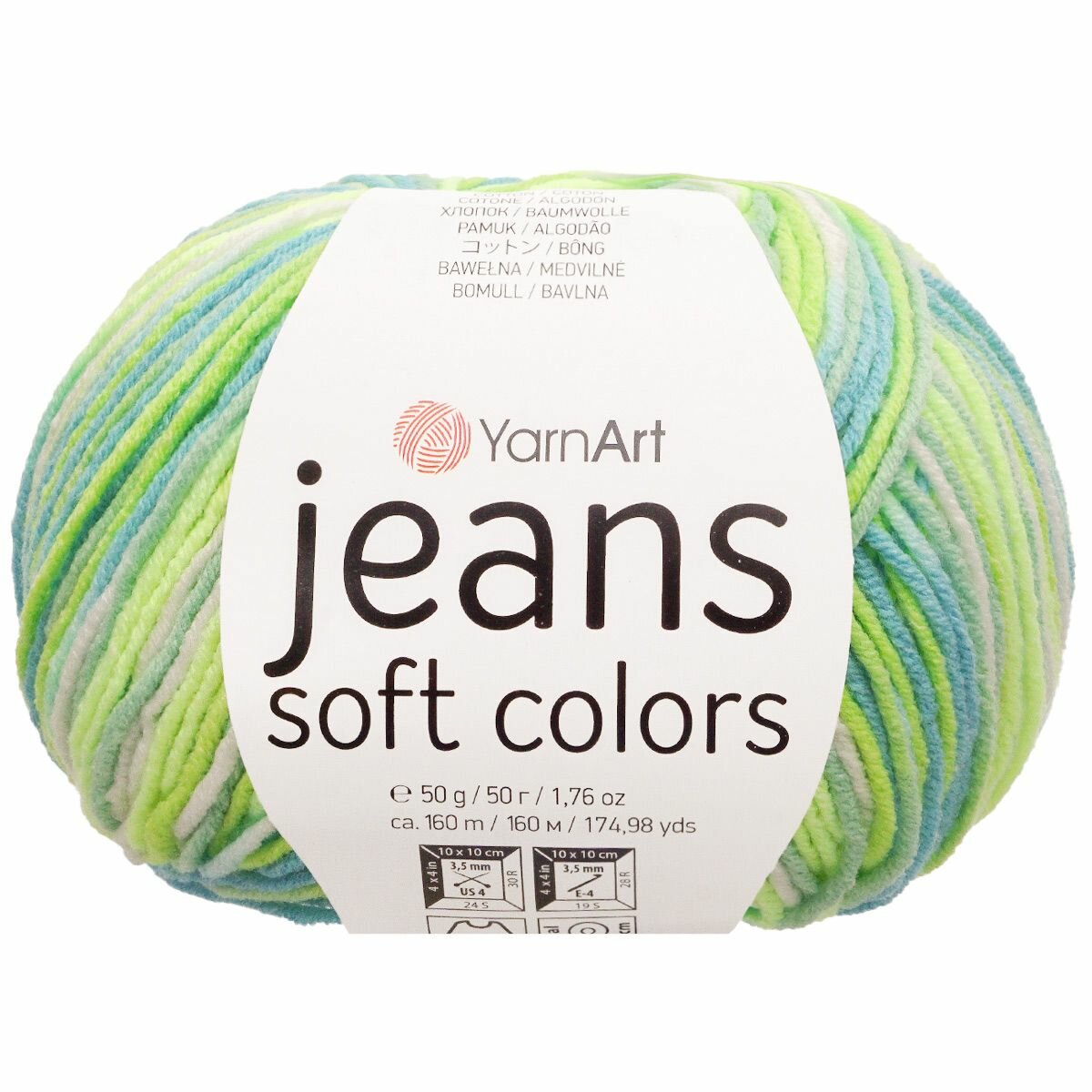 Купить Пряжа YarnArt "Jeans Soft Colors", 50 гр 160 м, 55% хлопок, 45% акрил, 6207 секционный, 10 шт