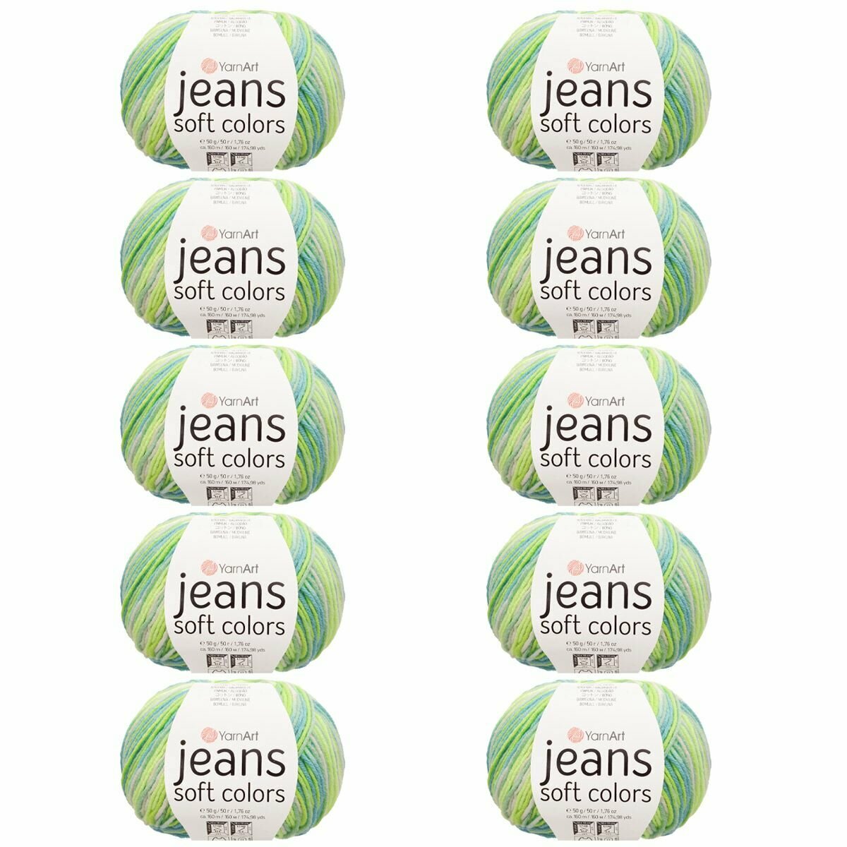 Пряжа YarnArt "Jeans Soft Colors", 50 гр 160 м, 55% хлопок, 45% акрил, 6201 секционный, 10 шт