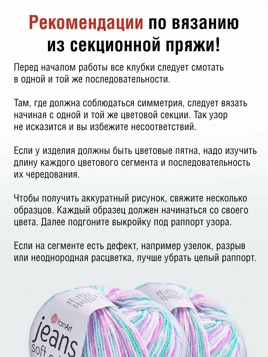 СохранитьПряжа YarnArt "Jeans Soft Colors", 50 гр 160 м, 55% хлопок, 45% акрил, 6202 секционный, 10 шт интересное: