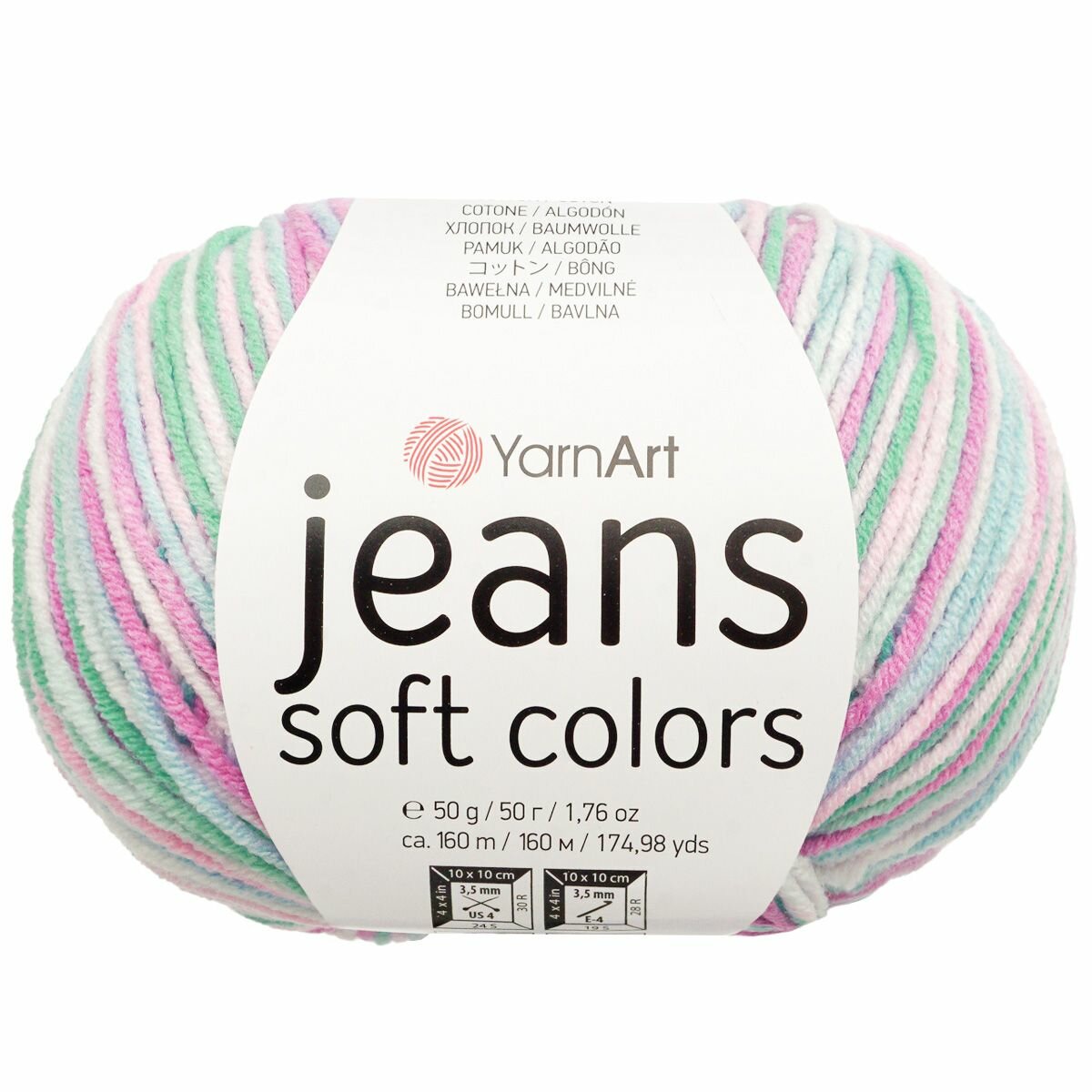 Купить Пряжа YarnArt "Jeans Soft Colors", 50 гр 160 м, 55% хлопок, 45% акрил, 6202 секционный, 10 шт