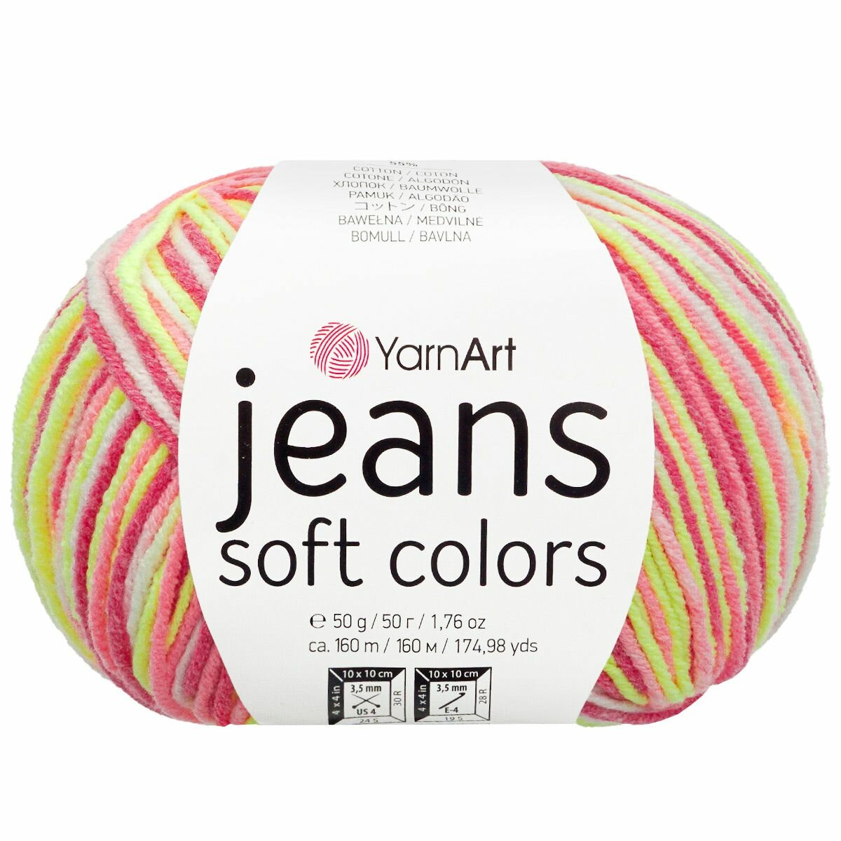 Пряжа YarnArt "Jeans Soft Colors", 50 гр 160 м, 55% хлопок, 45% акрил, 6202 секционный, 10 шт