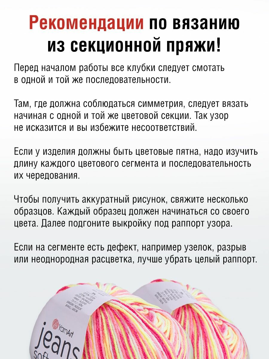 СохранитьПряжа YarnArt "Jeans Soft Colors", 50 гр 160 м, 55% хлопок, 45% акрил, 6214 секционный, 10 шт интересное: