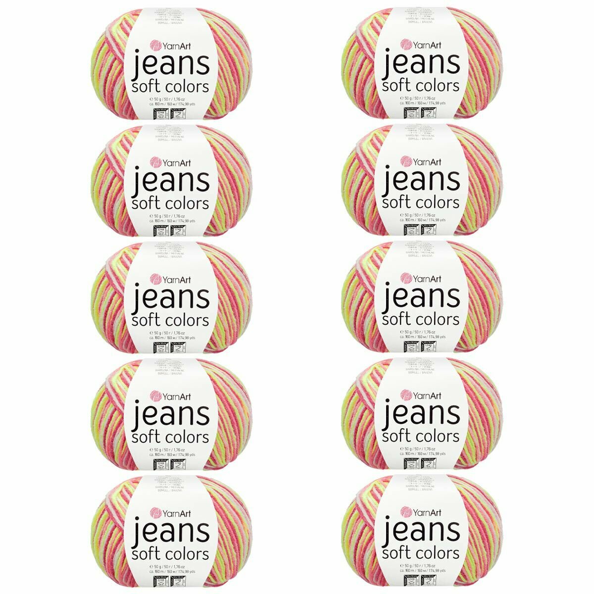 Пряжа YarnArt "Jeans Soft Colors", 50 гр 160 м, 55% хлопок, 45% акрил, 6201 секционный, 10 шт