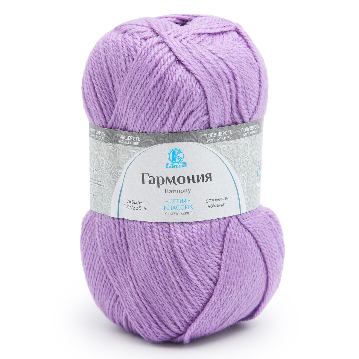Купить Пряжа Камтекс Гармония сирень (058), 50%акрил/50%импортная полутонкая шерсть, 245м, 100г, 5шт