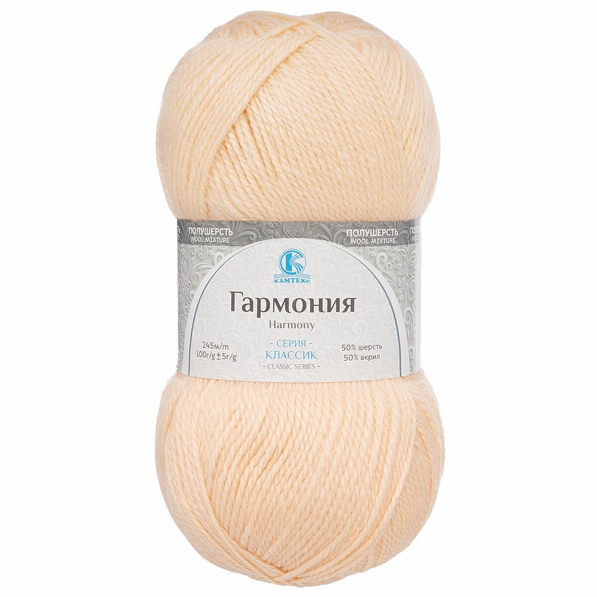 Пряжа Гармония Камтекс, бежевый - 005, 50% шерсть, 50% акрил, 5 мотков, 100 г, 245 м.