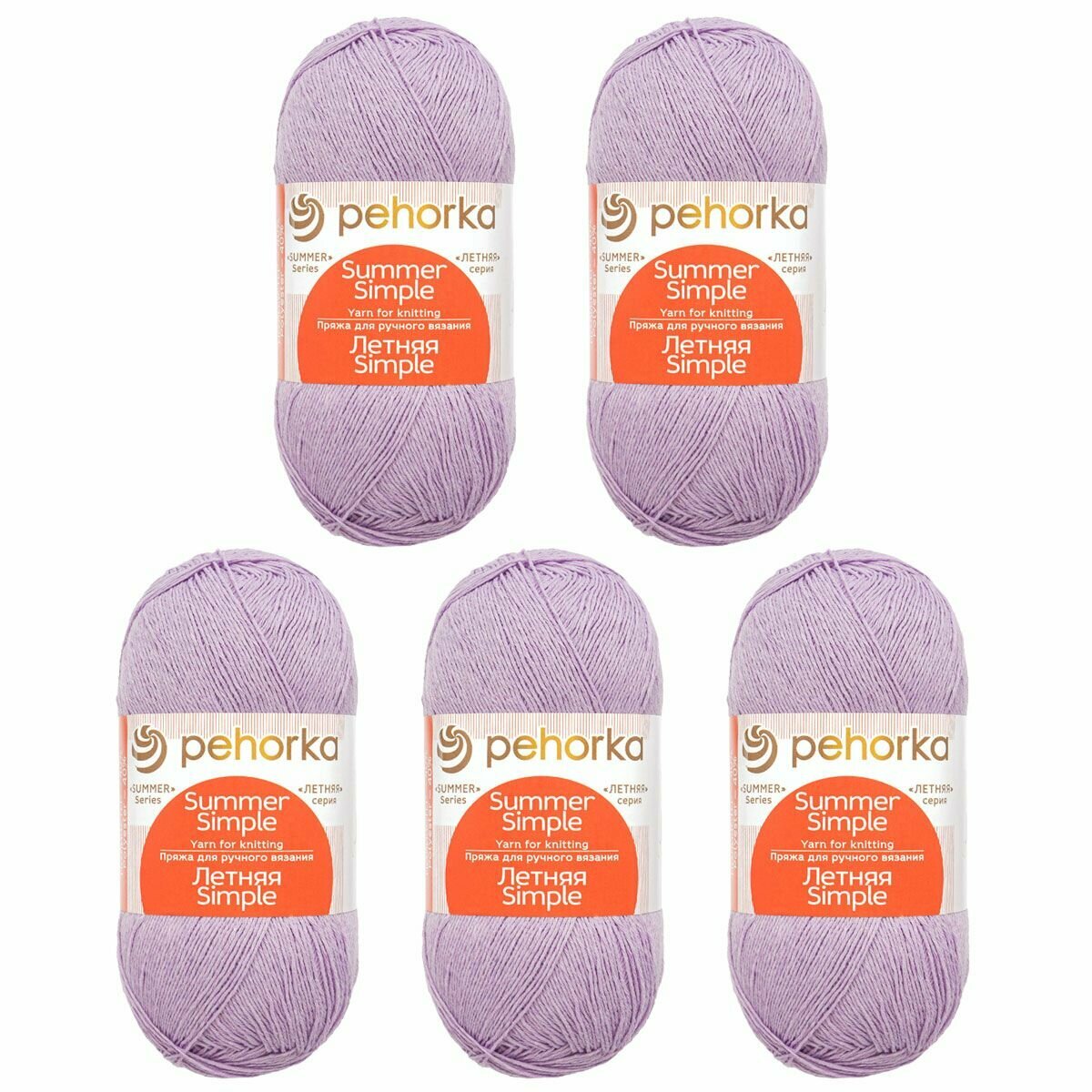 Пряжа Пехорка Летняя Simple Светло-сиреневый (178) 5 мотков 100 г/500 м (60% хлопок, 40% полиэстер) летняя симпл