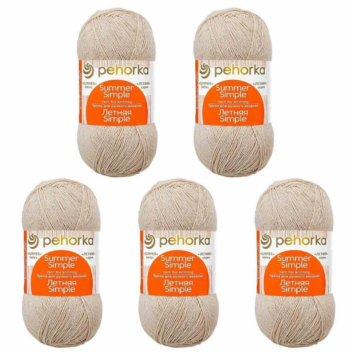 Пряжа Пехорка Летняя Simple Светло-бежевый (03) 5 мотков 100 г/500 м (60% хлопок, 40% полиэстер) летняя симпл