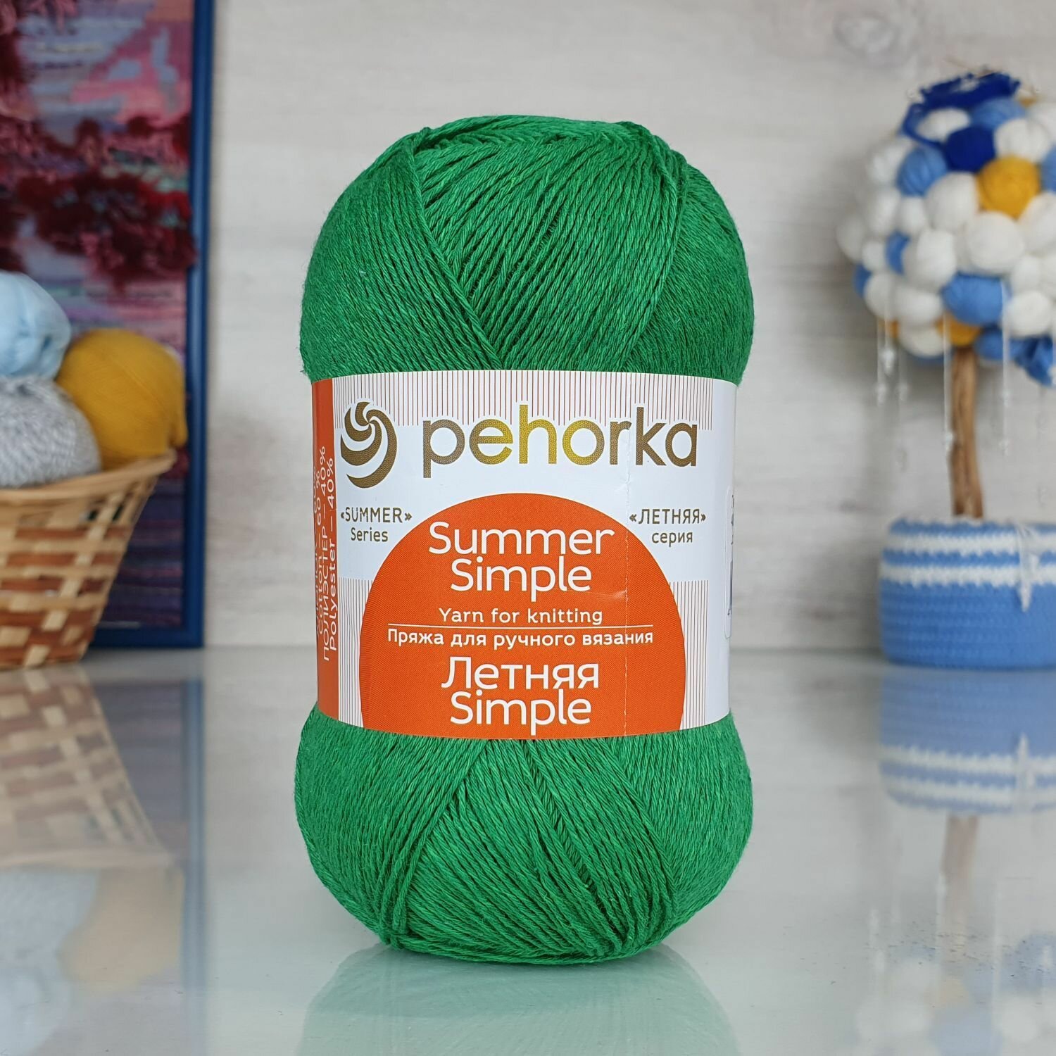 Пряжа Пехорка Летняя Simple Яркая зелень (480) 5 мотков 100 г/500 м (60% хлопок, 40% полиэстер) летняя симпл