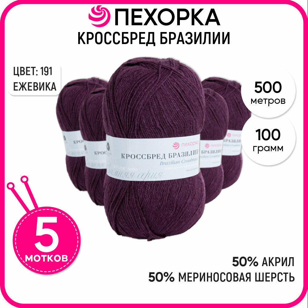 Пряжа Пехорка Кроссбред Бразилии 191 ежевика (100г/500м, упаковка 5 мотков)