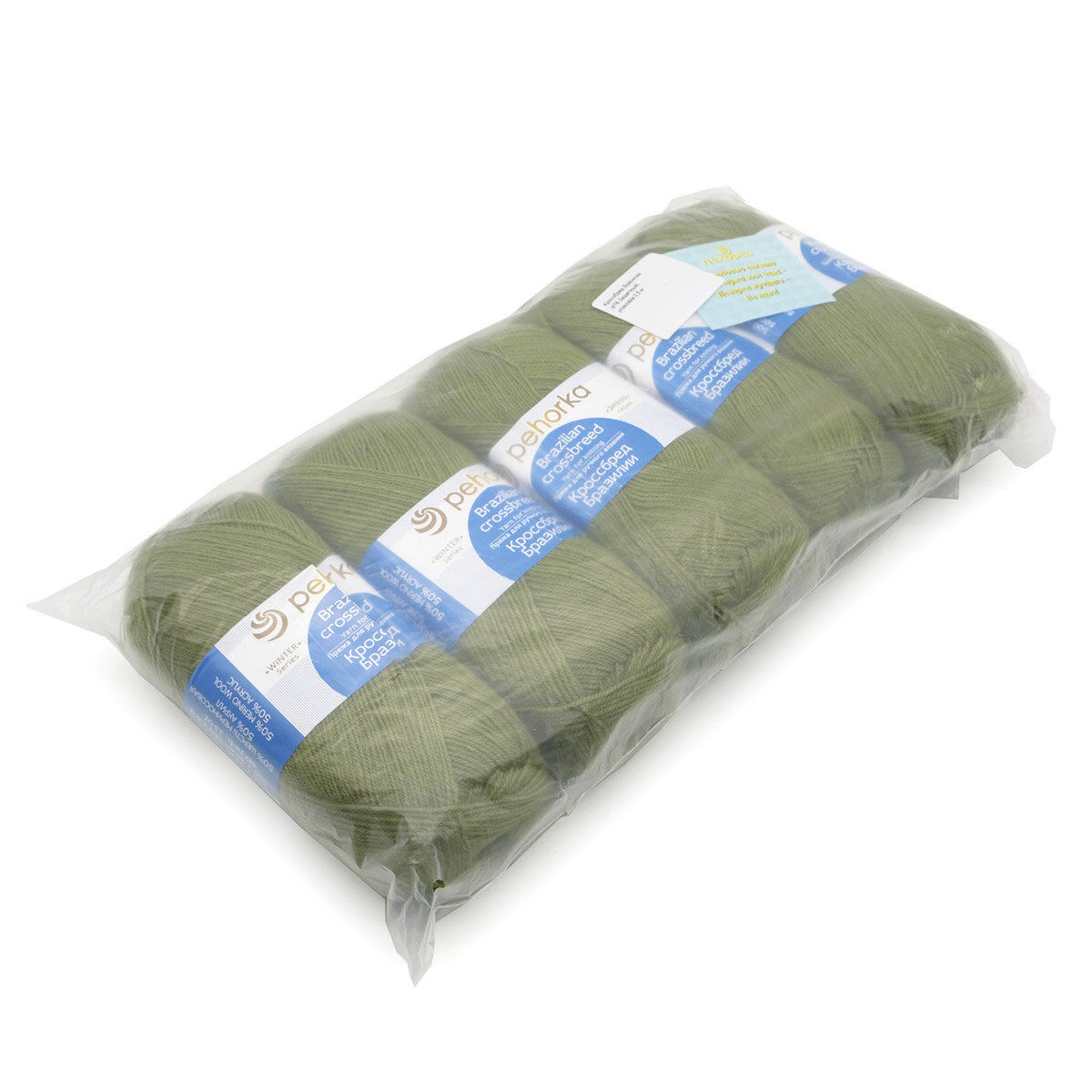 Пряжа Пехорка Кроссбред Бразилии 478 защитный (100г/500м, упаковка 5 мотков)