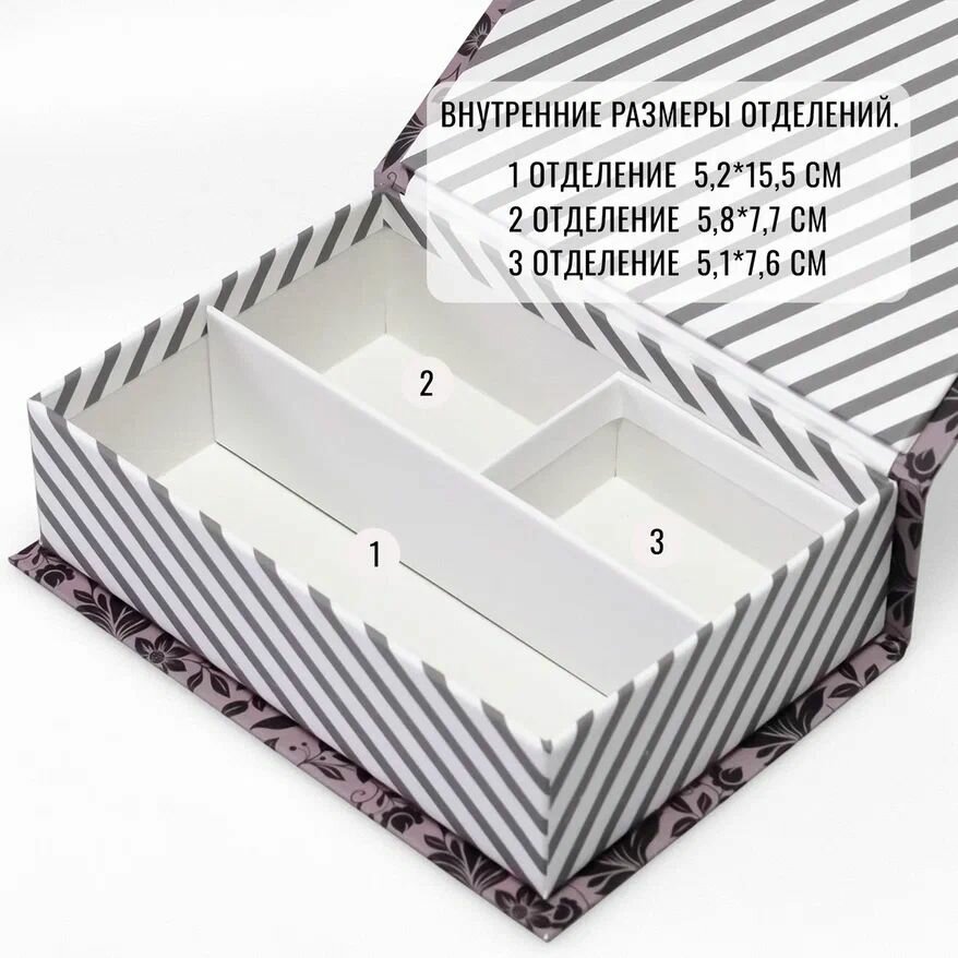СохранитьКоробка для хранения украшений, мелочей и аксессуаров, 170 x 120 x 50 мм. "Цветы/полоски", розовый интересное: