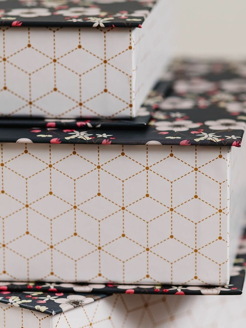 Подарочная Коробка - Шкатулка Cartonnage для рукоделия маленькая, 170 x 120 x 50 мм. "Цветы", черный