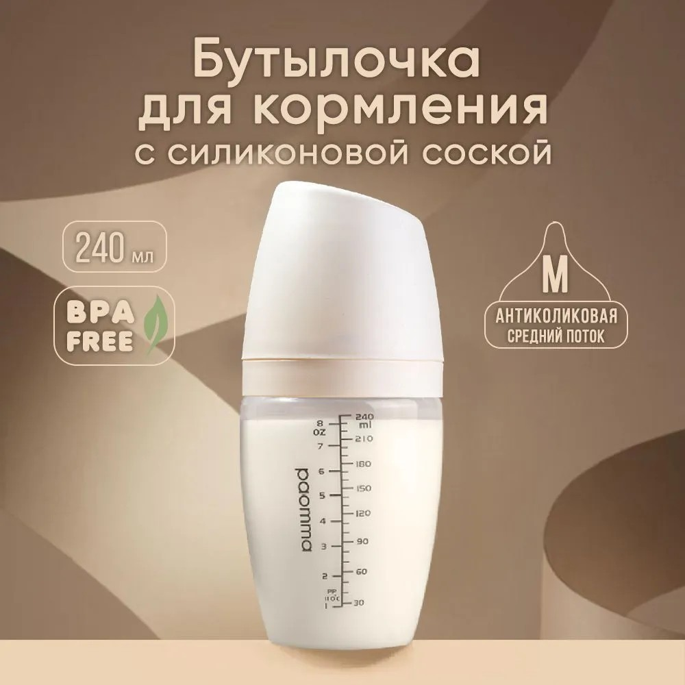 Детская бутылочка Paomma для кормления для новорожденных антиколиковая с соской mom effect 0+ 240 мл, Buttercream интересное:
