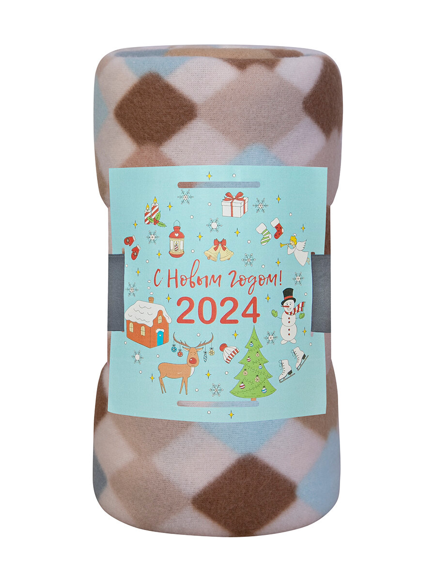 Купить Плед для новорожденного 100х118 флисовый детский в кроватку коляску, "Арлекино" бежевый