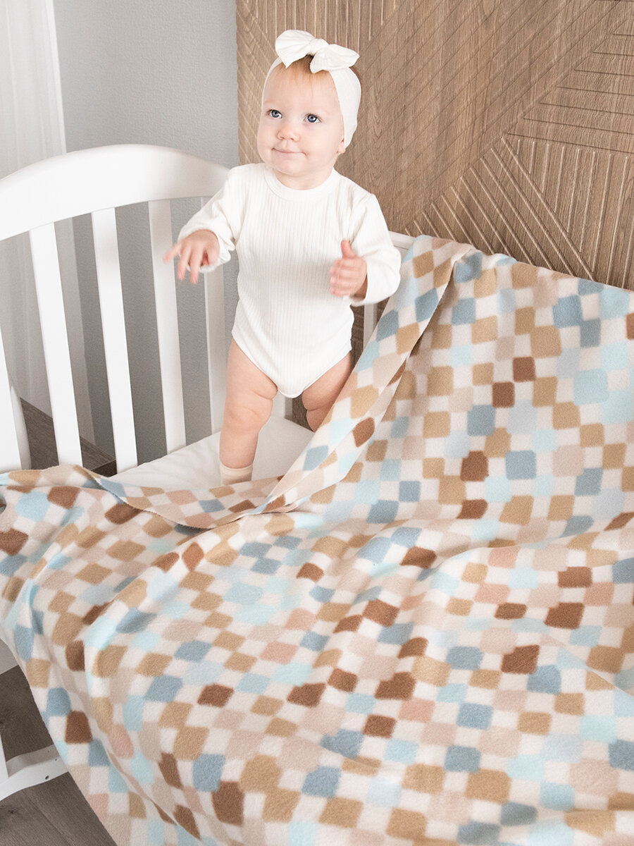 СохранитьПлед для новорожденного 100х118 флисовый детский в кроватку коляску, "Арлекино" бежевый интересное: