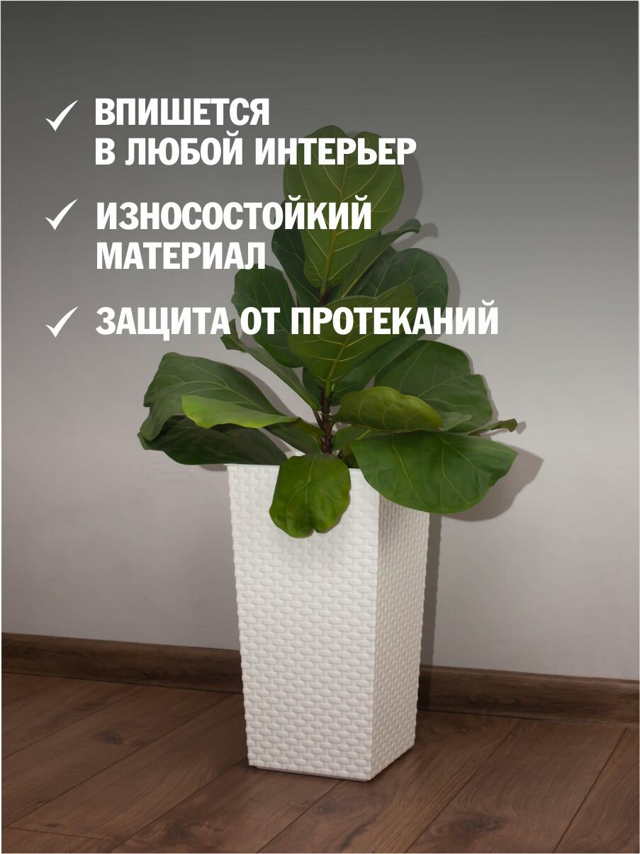 Купить Кашпо напольное со вставкой Ротанг 15л белый