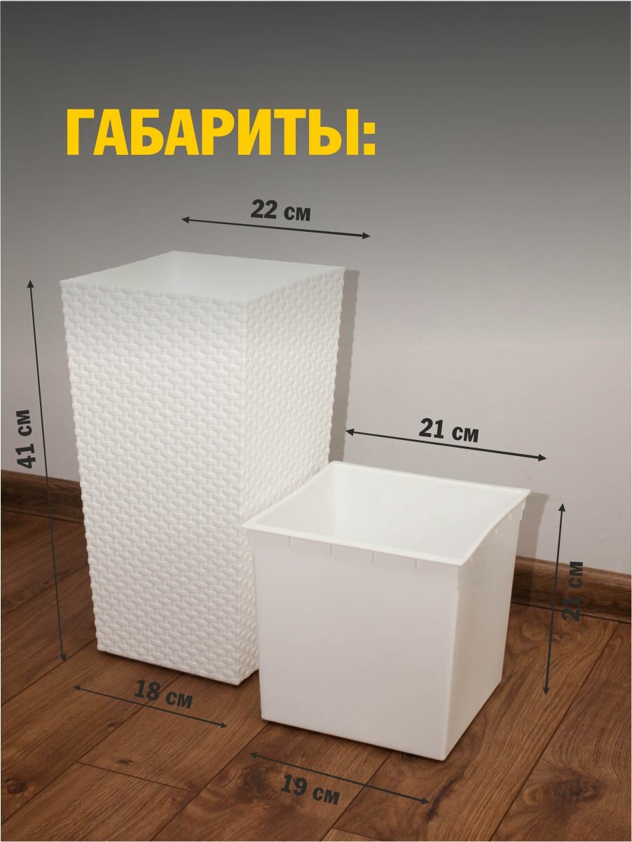 Комплект из 2шт кашпо напольное со вставкой Ротанг 15л белый