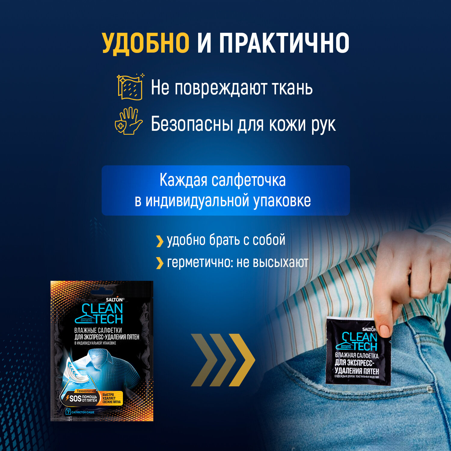Влажные салфетки для удаления пятен Salton CleanTech в индивидуальной упаковке, 2 упаковки по 7 шт интересное: