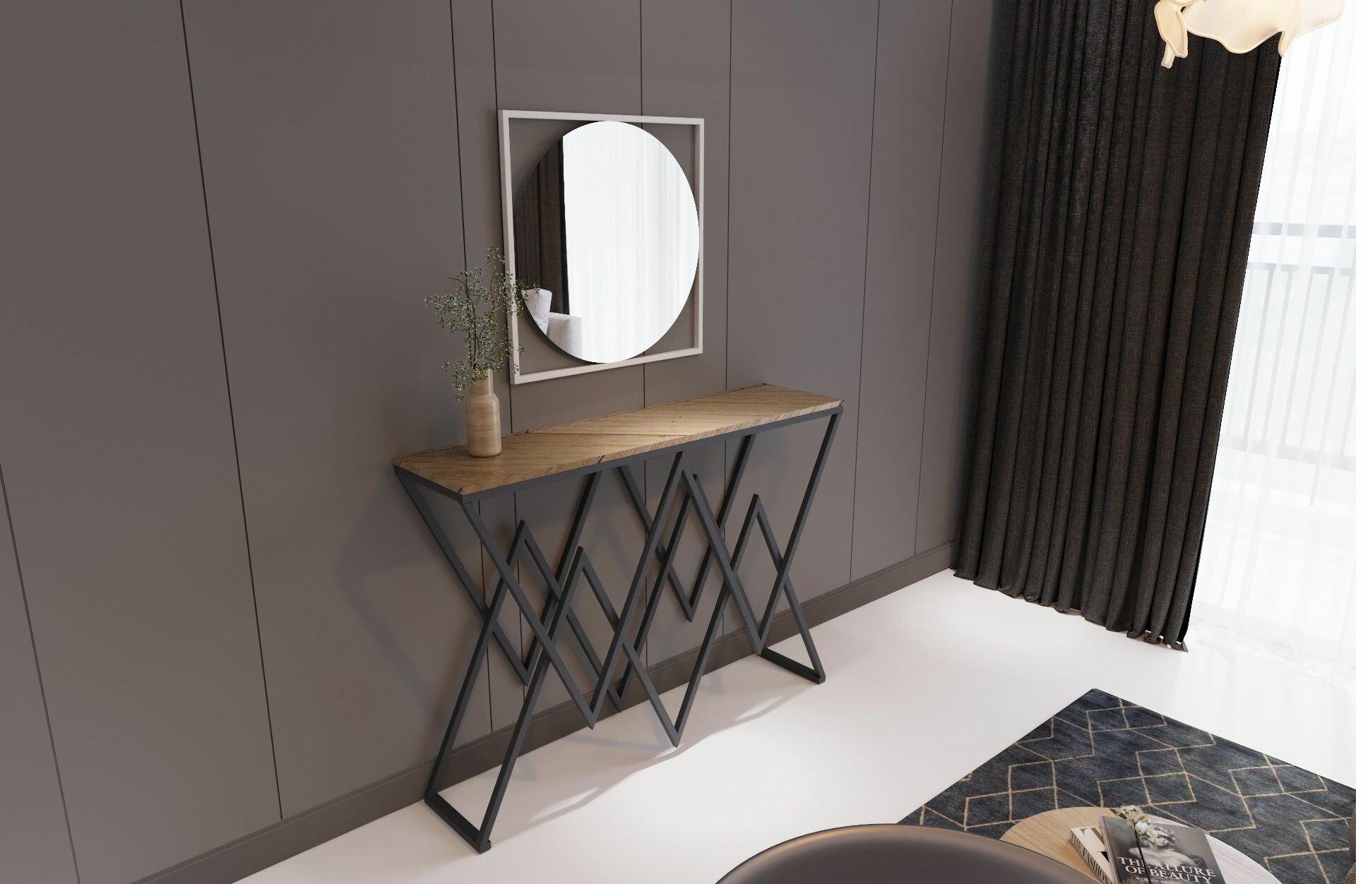 Декоративное настенное зеркало Черное, 80х80 см, для гостиной, спальни, ванной комнаты, прихожей и гардеробной,1 шт