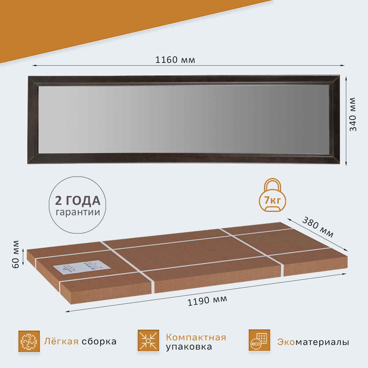 Зеркало навесное Мебелик Берже 23 темно-коричневый Размеры: Высота 970мм Глубина 20мм Ширина 670мм
