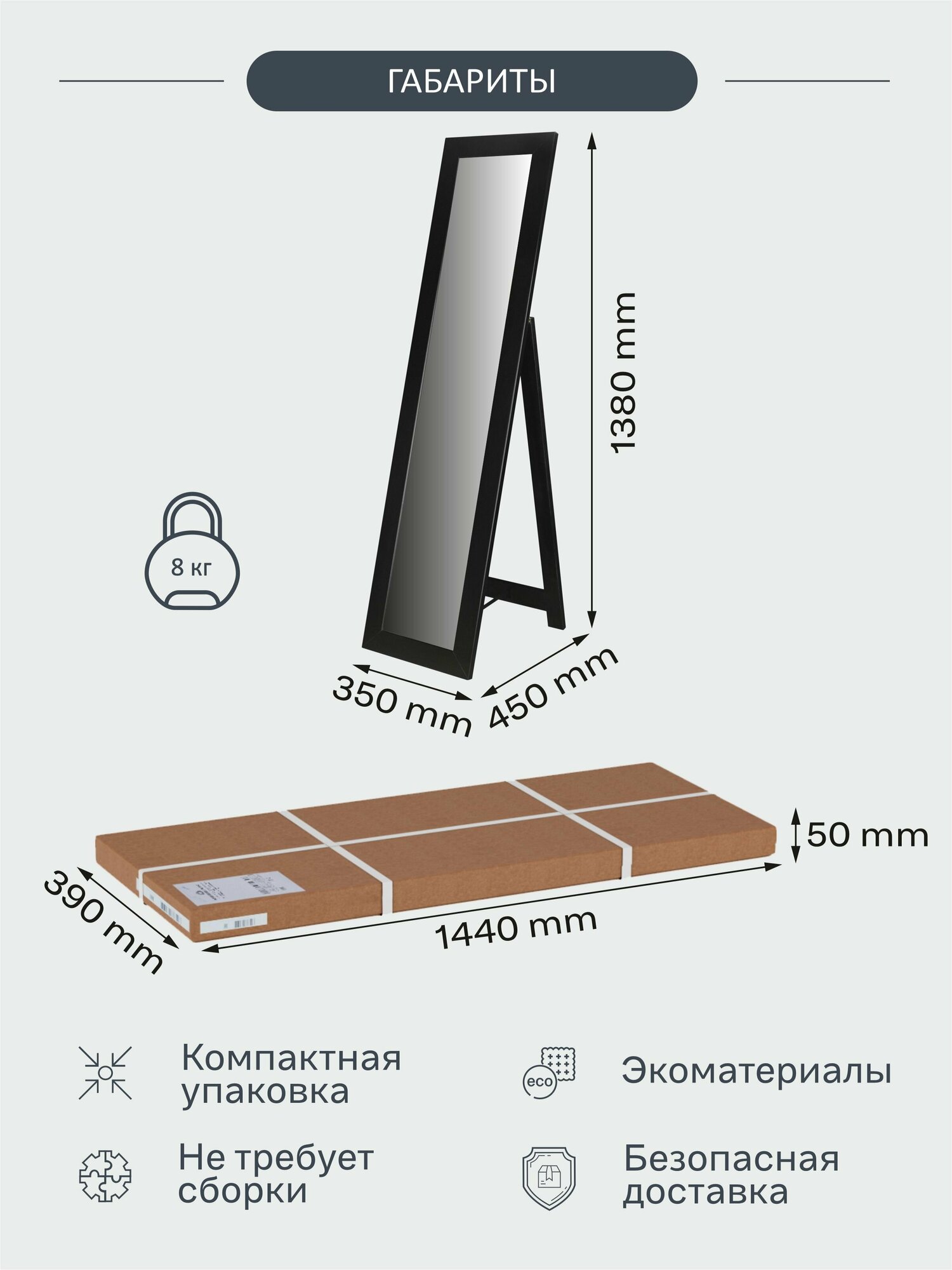 Зеркало напольное Мебелик BeautyStyle 1 серый графит Размеры: Высота 1300мм Глубина 450мм Ширина 350мм