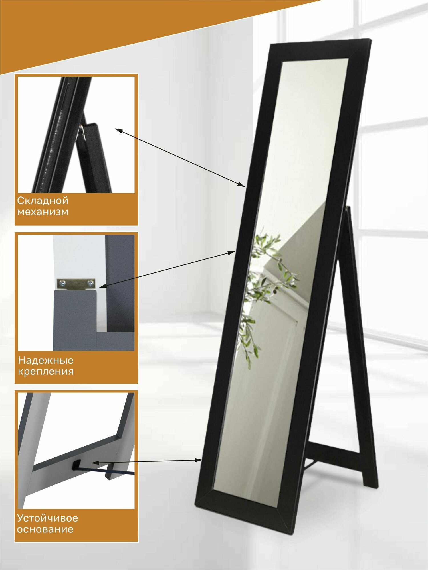 Зеркало напольное BeautyStyle 2 черный 137 см х 42 см