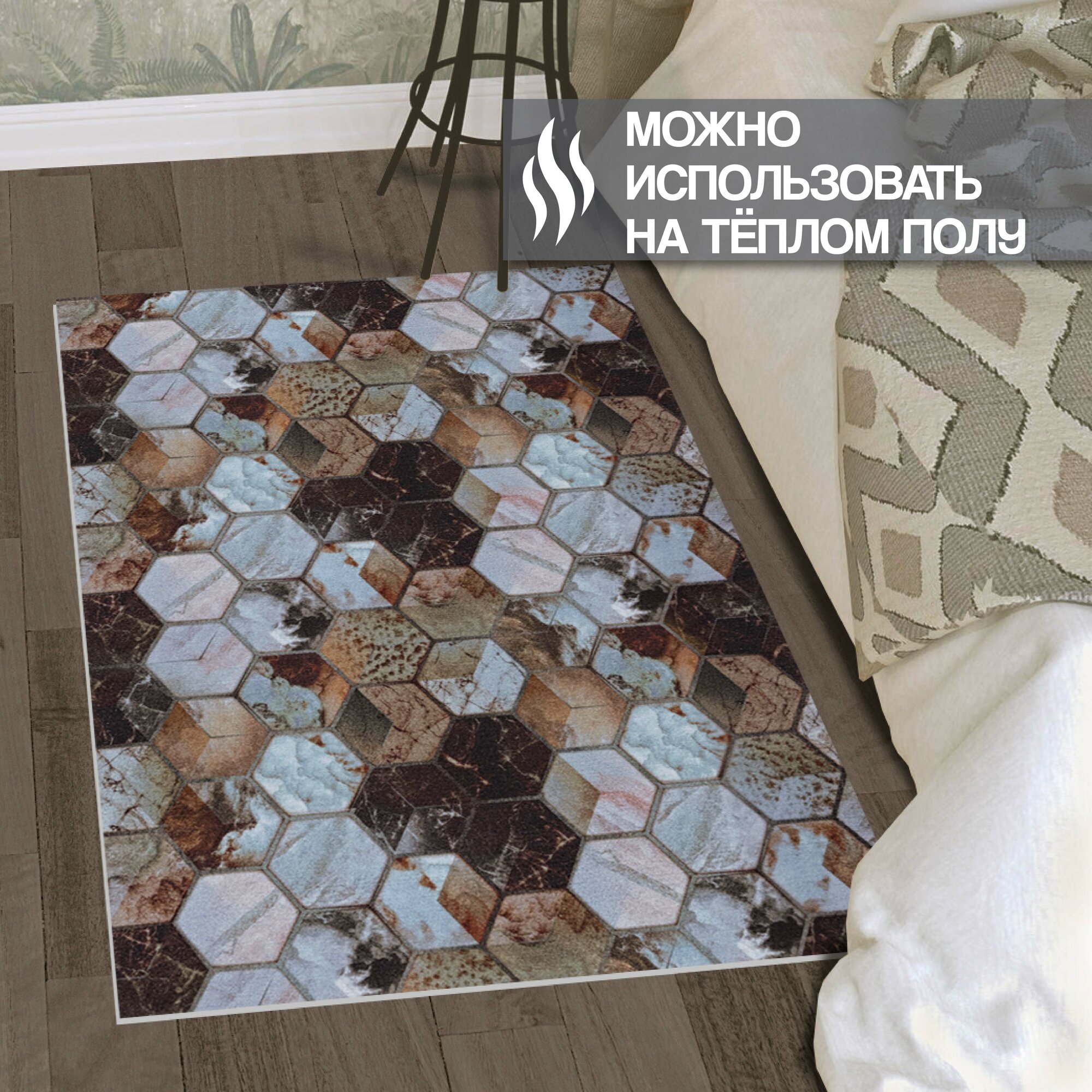 Коврик вырезной прикроватный, придверный Icarpet PRINT антискользящий влаговпитывающий/ 60х100 см/ Соты Мрамор бежевый 105, коврик для ванной, для кухни