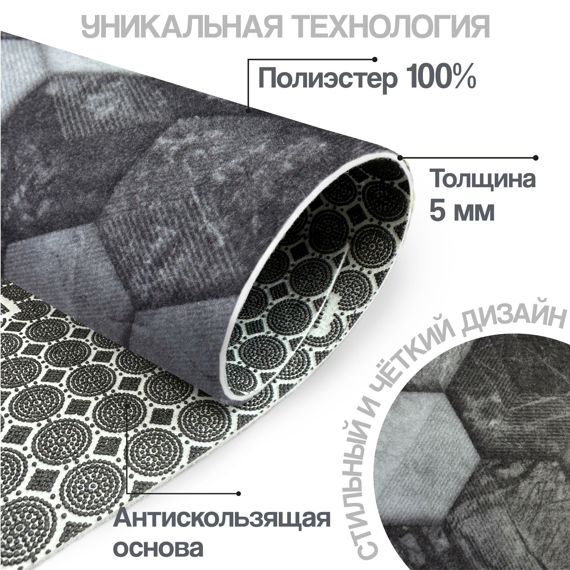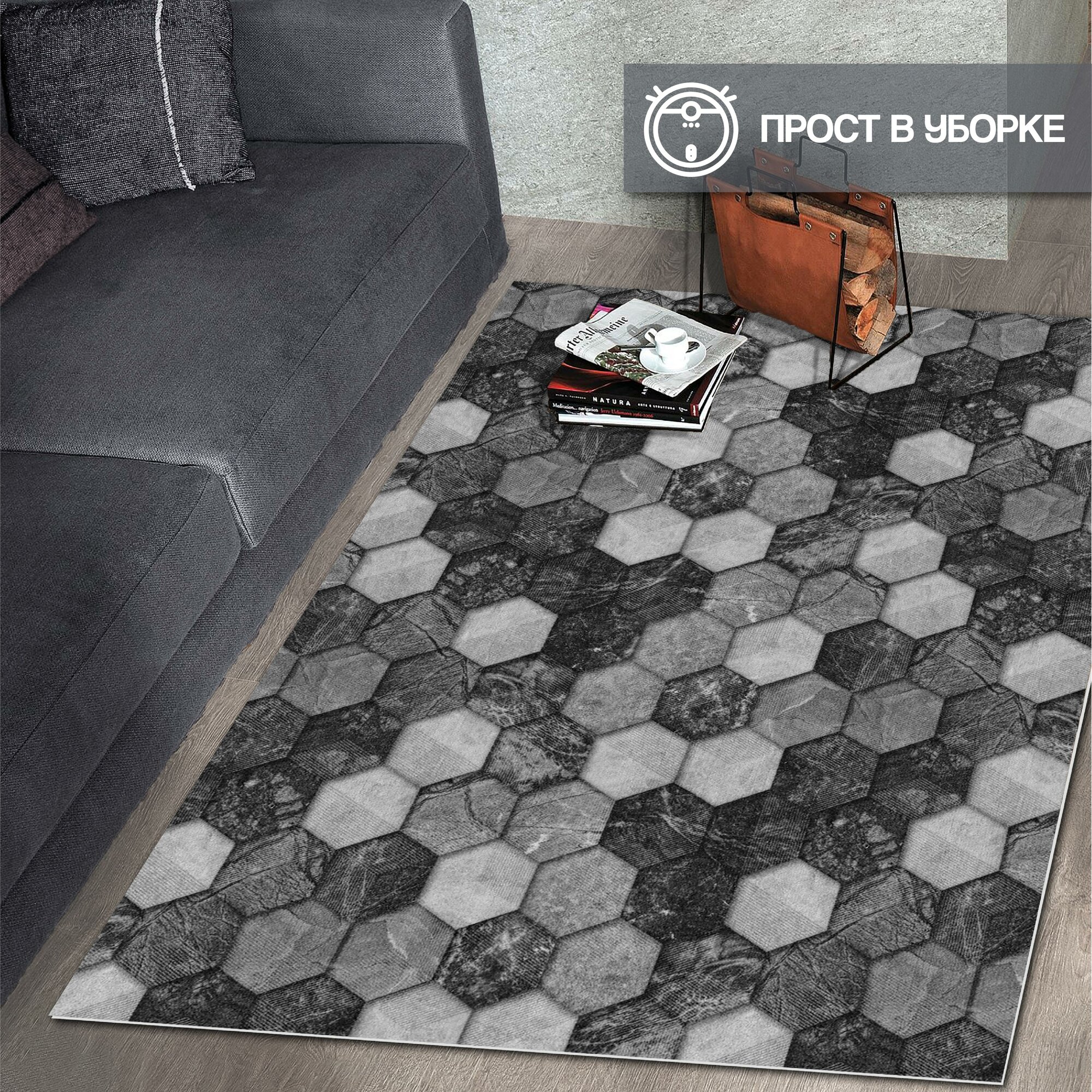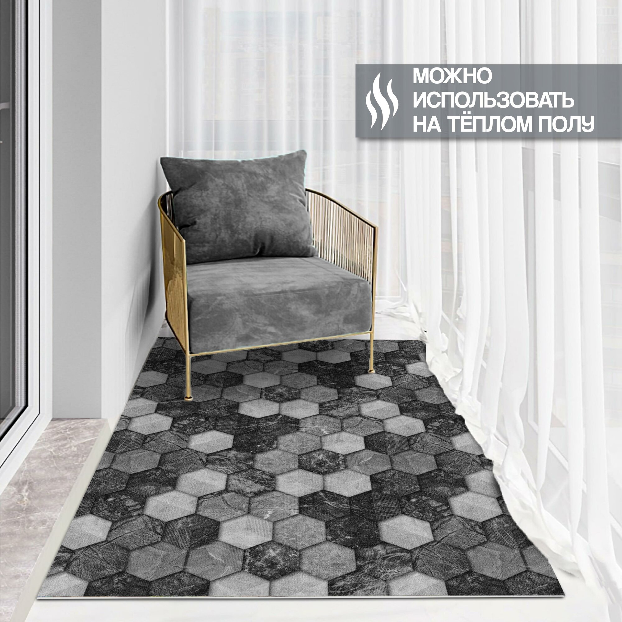 СохранитьКоврик придверный вырезной PRINT / размер 100х150 см/ Соты Мрамор чёрно-серый, коврик прикроватный, для кухни, для ванной интересное: