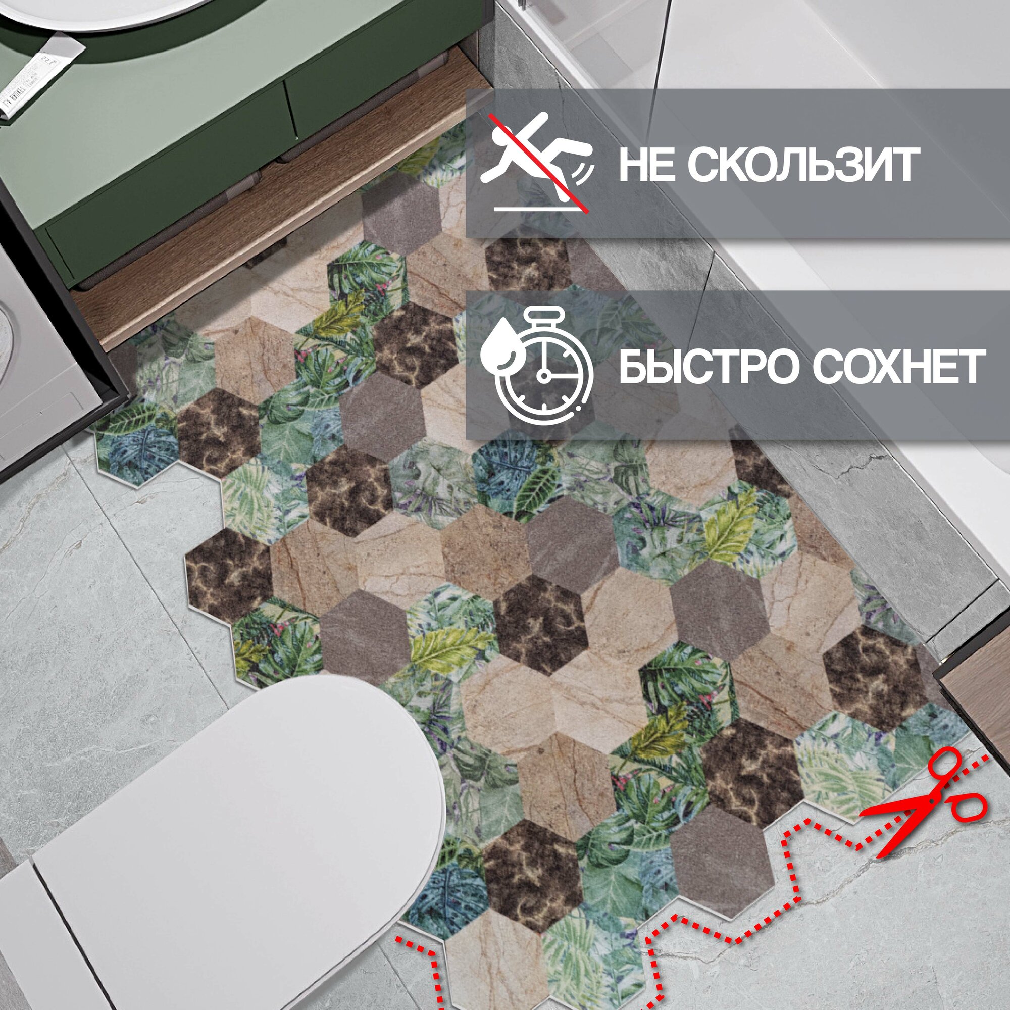 Купить Коврик вырезной Icarpet PRINT антискользящий влаговпитывающий/ размер 80х120 см/ Соты Тропики, коврик для ванной, для кухни, прикроватный
