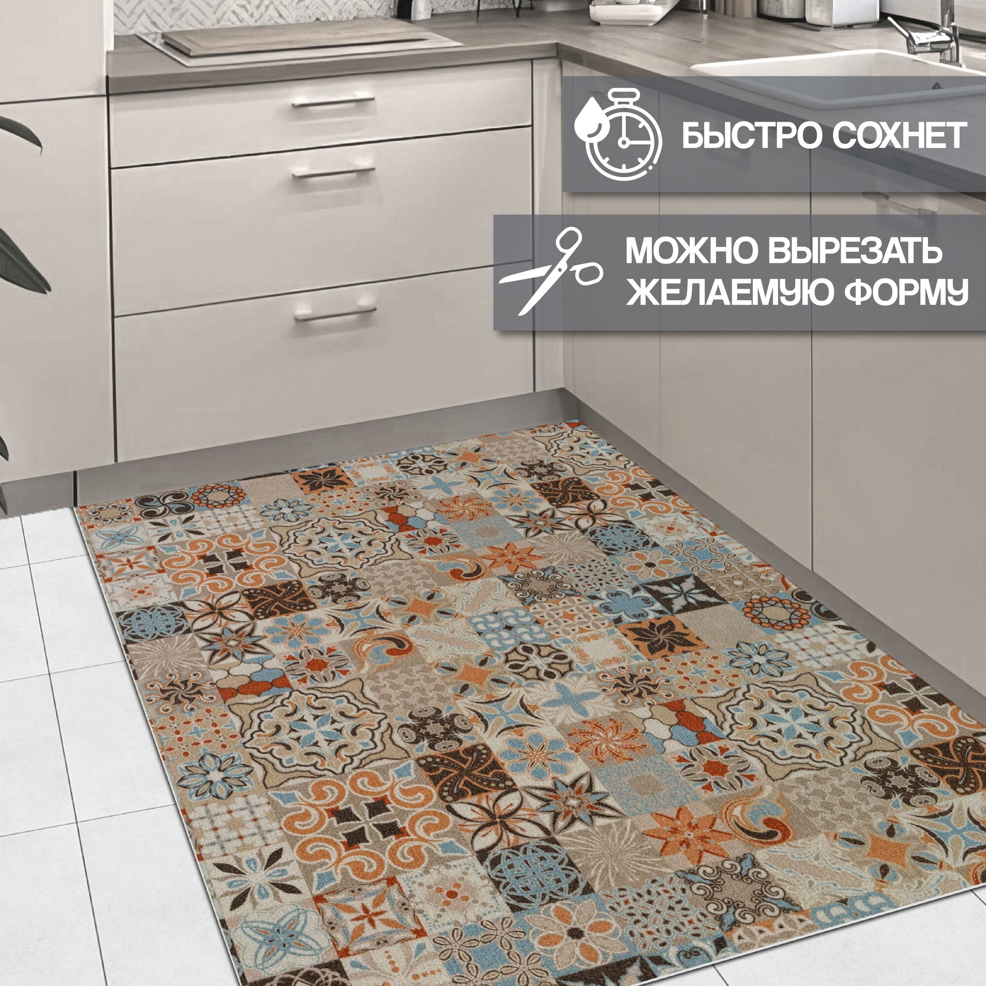 Коврик вырезной придверный, прикроватный Icarpet PRINT антискользящий влаговпитывающий/ 60х100 см/ Плитка Азулежу 104, коврик для кухни, для ванной