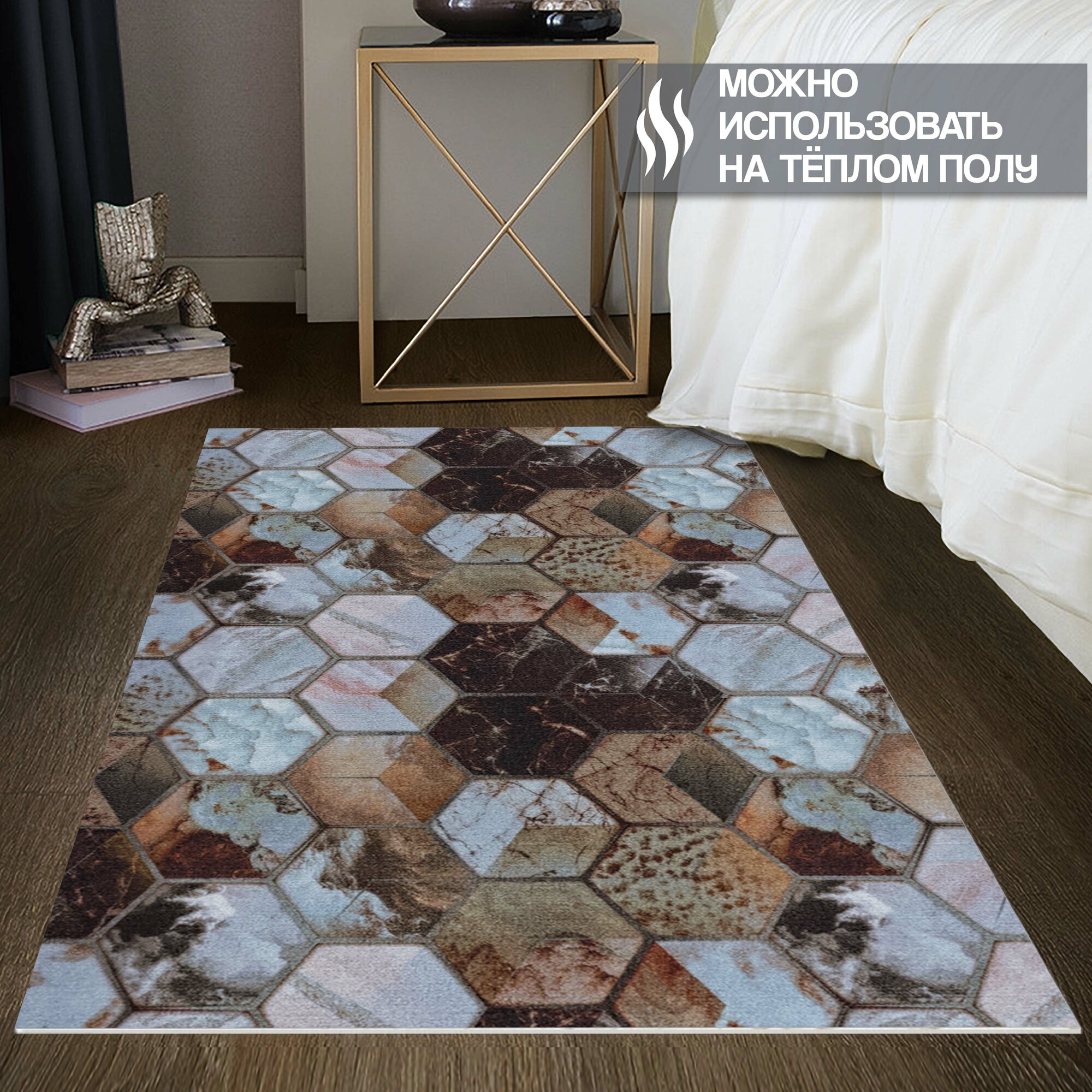 Коврик вырезной прикроватный, придверный Icarpet PRINT антискользящий влаговпитывающий/ 60х100 см/ Соты Мрамор бежевый 105, коврик для ванной, для кухни